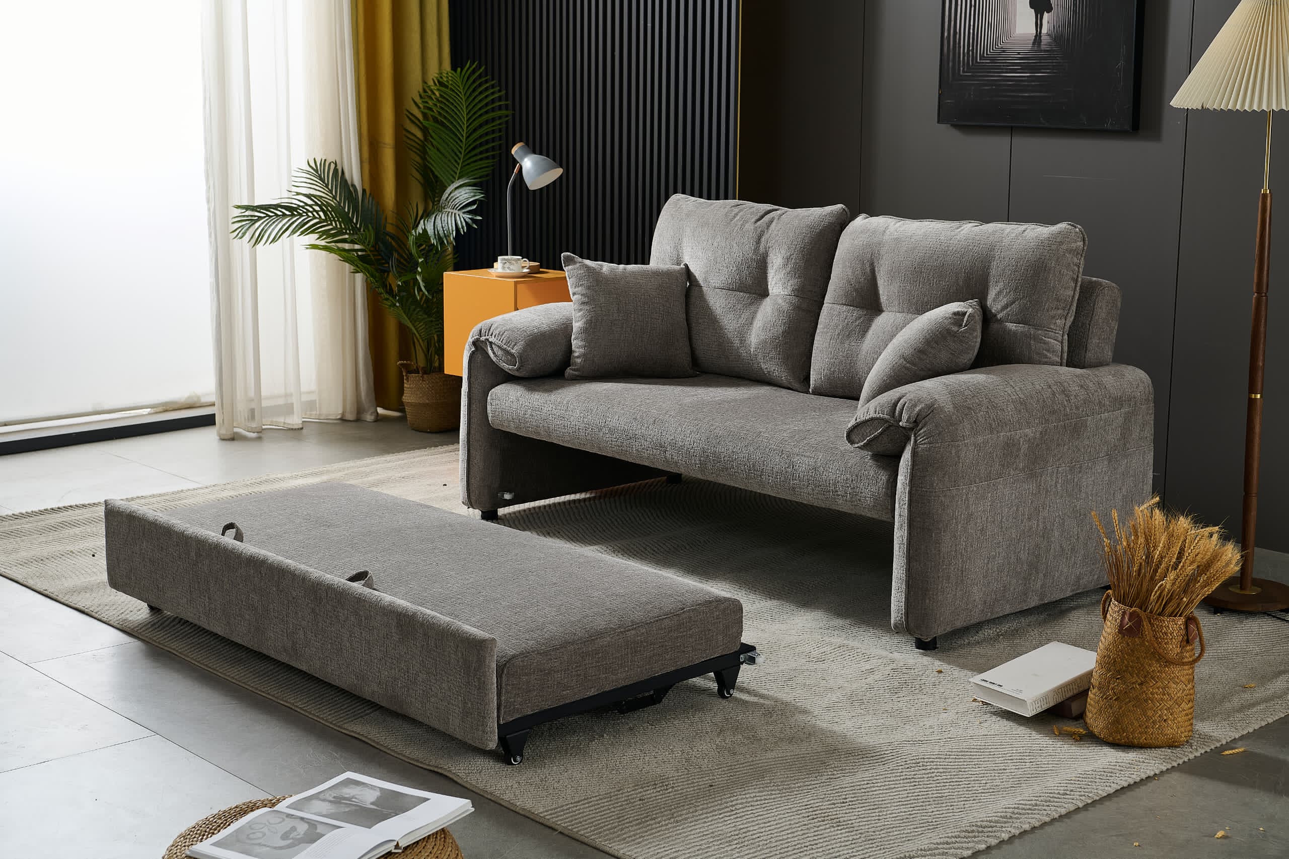 The 5-position reclining backrest guarantees a customized lounging experience, while the contemporary fabric upholstery perfectly complements any decor. Specifically designed for modern living, this compact sofa bed offers ultimate relaxation throughout the day and a peaceful night's sleep in no time.