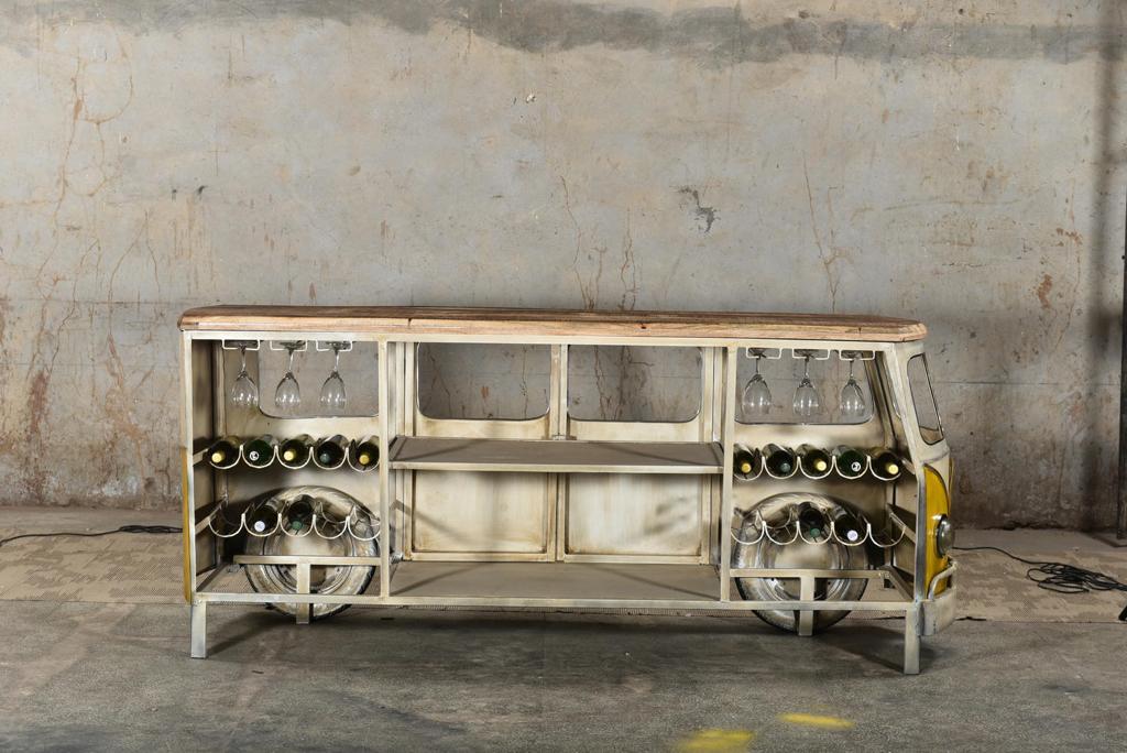 The yellow peace van bar in a unique and eye-catching bar that is perfect for any occasion. With its fun and quirky design inspired by the classic hippie van, this bar is sure to bring a smile to your face. This bar is the perfect size to fit into any room and serve as a functional and conversation piece.