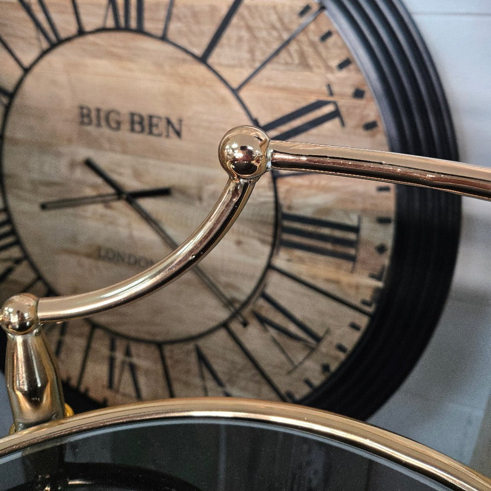 Elevate your hosting game with our stylish Round 2 Tier Bar Cart! Its sleek gold metal design and dark glass shelves add a touch of sophistication to any space. Perfect for entertaining, this cart is not only beautiful but also functional. Cheers to effortless serving and impressing your guests!