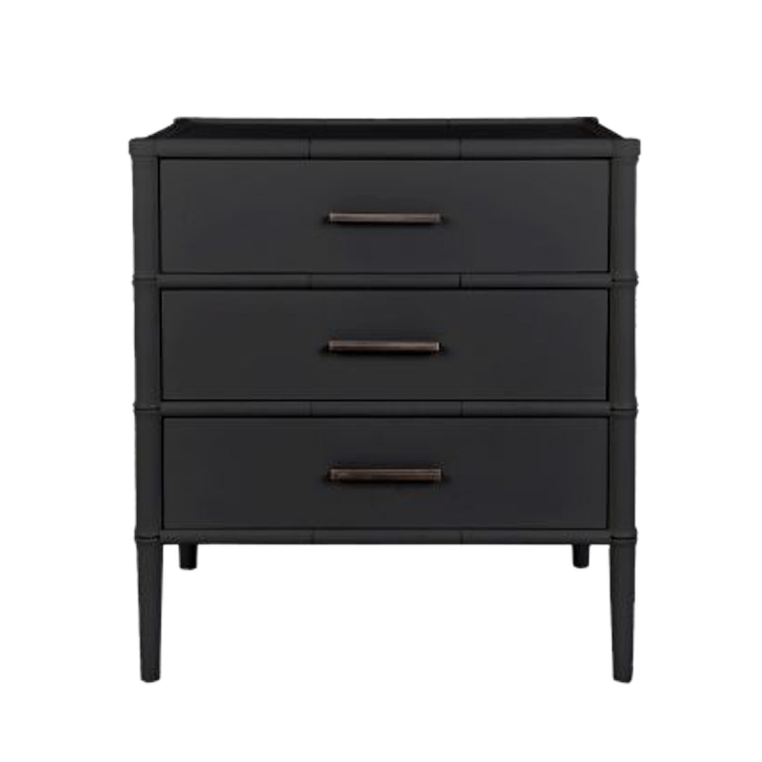 Bamboo Detail 3 Drawer Bedside Table - Black