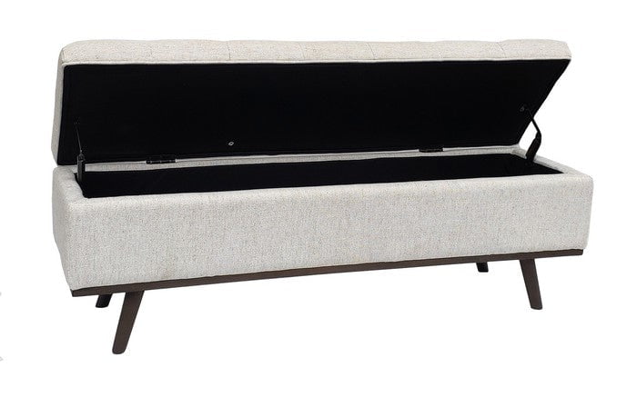 Is any living room or bedroom ever complete without an ottoman that features a storage compartment with access via a hinged lid. This carbo ottoman w/hinged lid is carefully crafted with a solid timber frame and upholstered in a quality linen fabric with a foam fill. Simple, comfortable, and made to fit in with a wide variety of home décor.