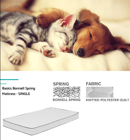 Mattress: Basic Mattress Series uses quality Bonnell springs to provide medium firmness which helps the mattress to better retain its shape. Our Basic Mattress comes padded with comfy foam and is upholstered with knitted polyester fabric.