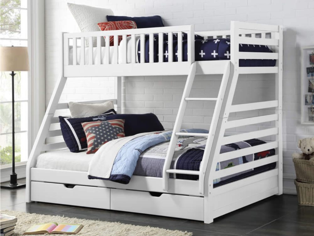 With a fun design that children will love and the versatility parents need, this bunk bed is a crowd pleaser for the whole family. The bunk bed features a single top bunk and bottom double bed to sleep plenty of children at sleepovers or in families with siblings, and the built-in ladder is angled for an easy climb. Two under-bed drawers offer useful storage space for clothes, toys, bed linen, games and more.