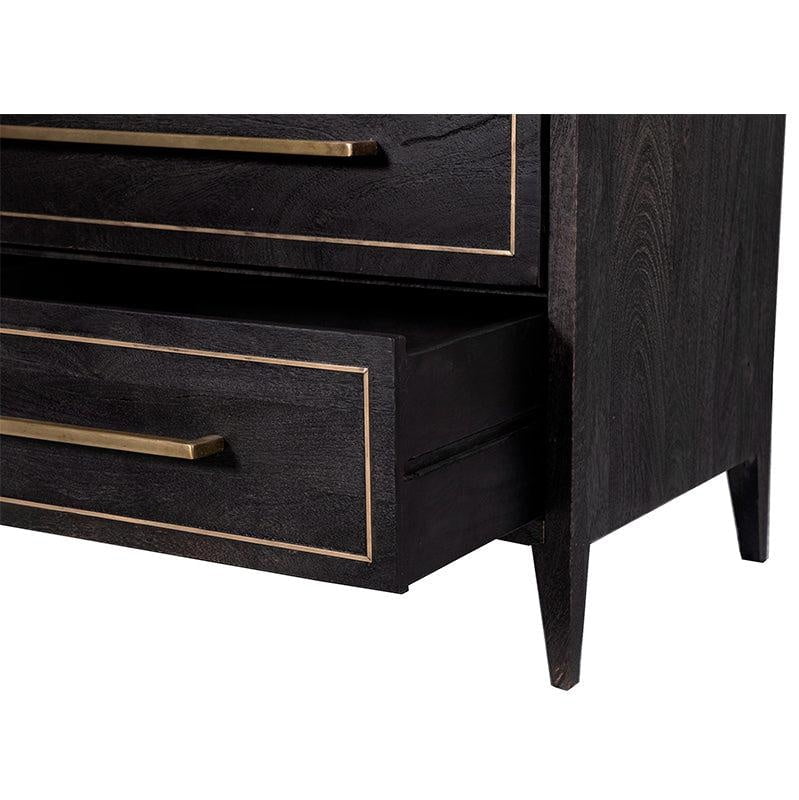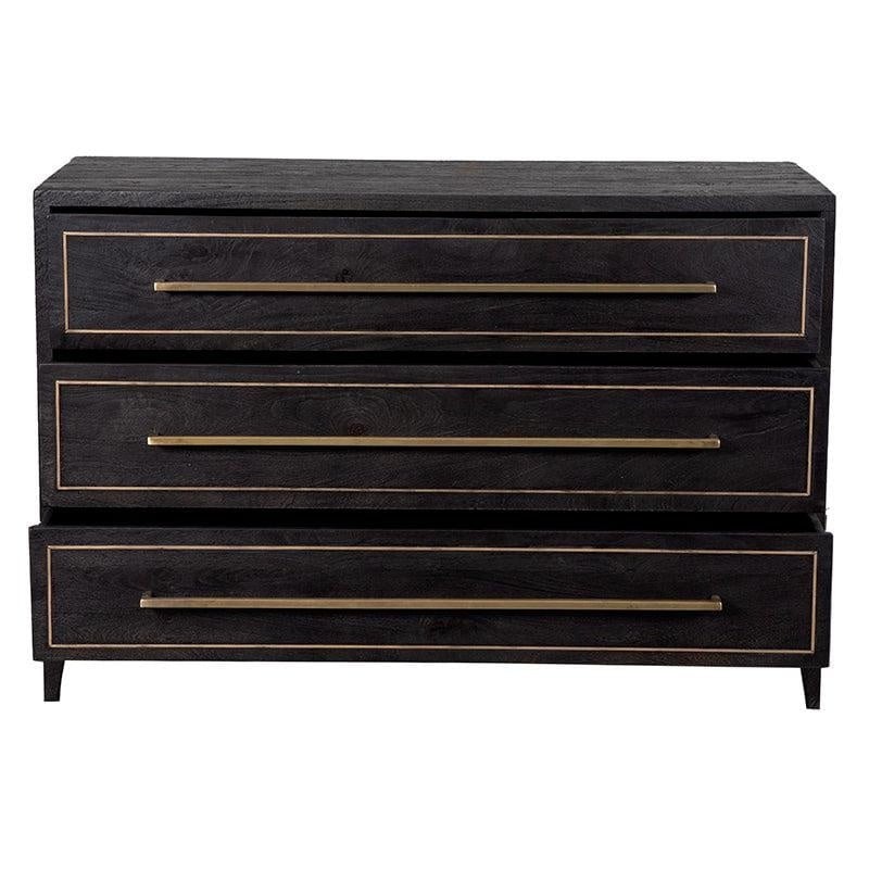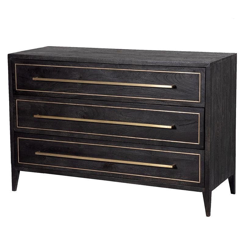 Look no further than the Petra Commode: a stunning combination of distressed mango wood and black metal framed with brass accents. This unique piece will add a touch of sophistication and style to any home. Timelessly elegant, it's an eye-catching addition that will never go out of fashion.