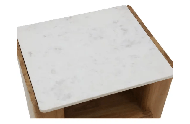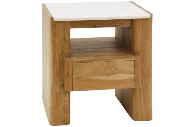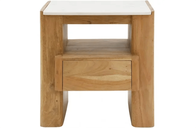 Lucia Acacia & Marble Bed Side Table - Oak Finish