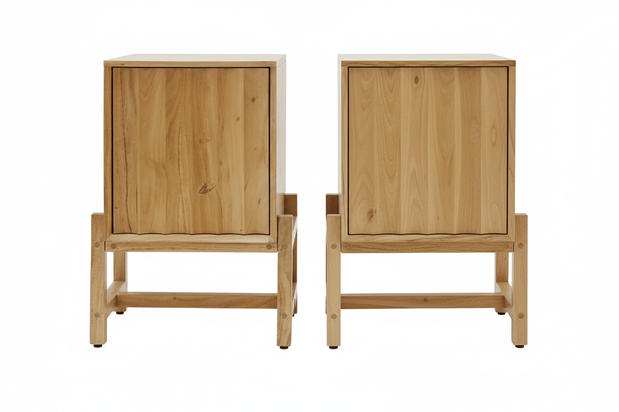 Finished in a soft, welcoming Oak tone, this bedside table showcases the rich, swirling grains of authentic Acacia timber. The door features a subtle "ridge" design that adds depth and visual interest, turning a functional bedroom staple into a statement piece.