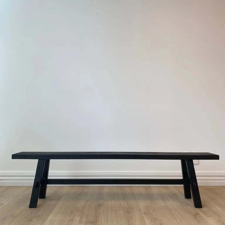 Enhance your home with our Alabaster Reclaimed Wood Long Bench in Black. This versatile piece can be used in any room, from holding blankets in the bedroom to adding a welcoming touch to your entryway. With its simplistic yet stylish design, it's a practical and beautiful addition to any space!