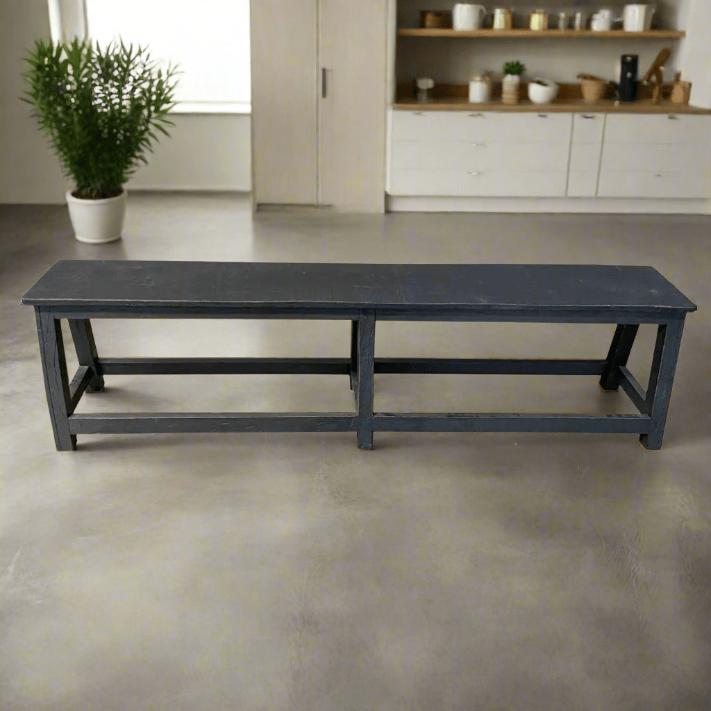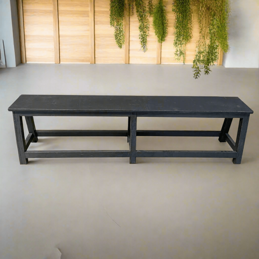 Add a touch of contemporary style to your space with our Harvest Wooden Bench - Black. Handcrafted from high-quality wood, this bench showcases natural textures and unique imperfections, making each piece truly one-of-a-kind. The sleek black finish maintains the bench's beautifully weathered charm.