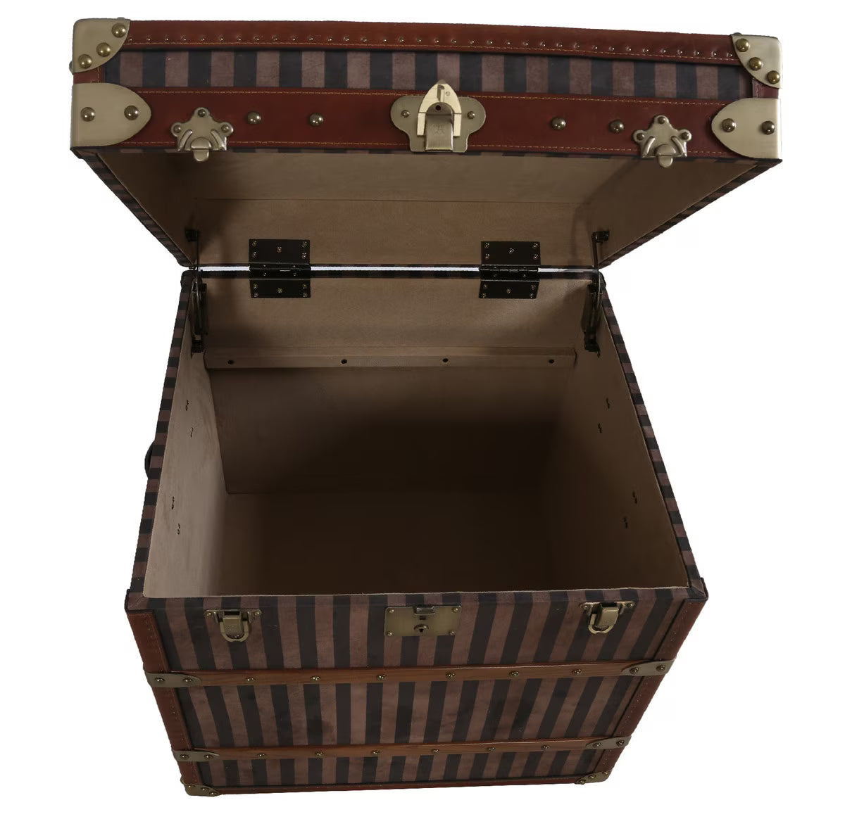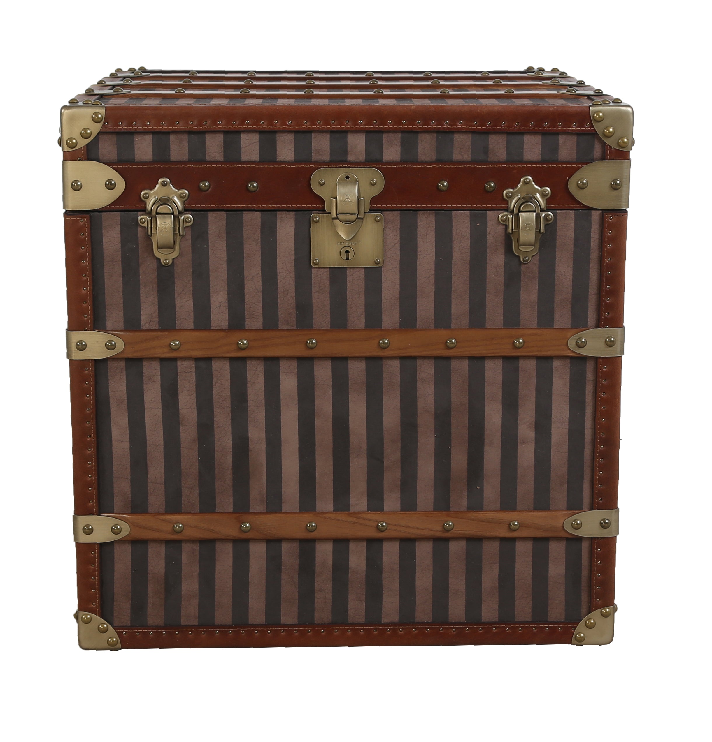 Rare Brass Bound Striped Square Trunk