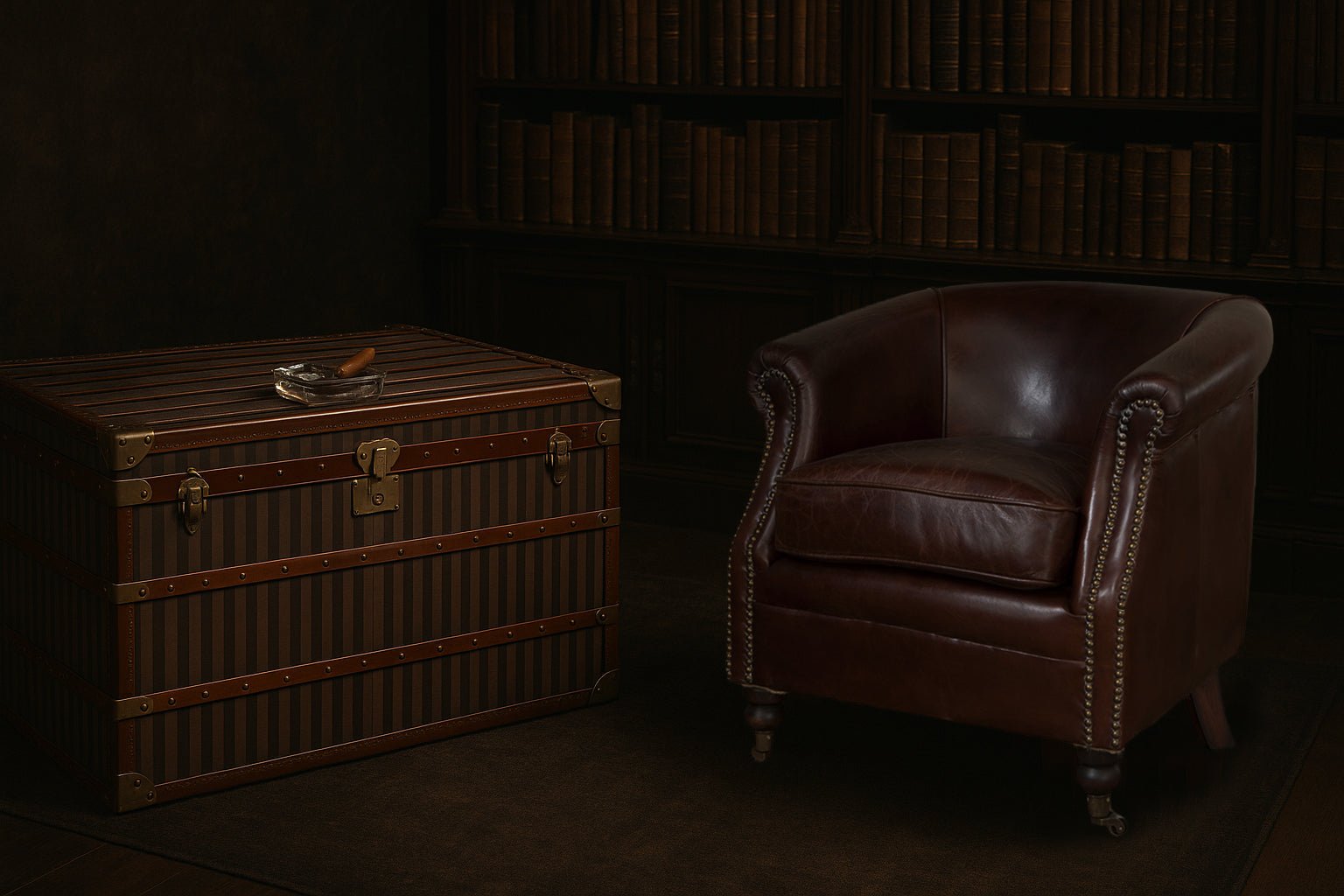 Constructed with a sturdy oak wood frame and finished with genuine leather trims and antique brass hardware, this piece combines durability with refined detail. The spacious interior makes it perfect for storing blankets, books, or keepsakes, while the versatile design allows it to double as a coffee table, side table, or decorative accent in any room.