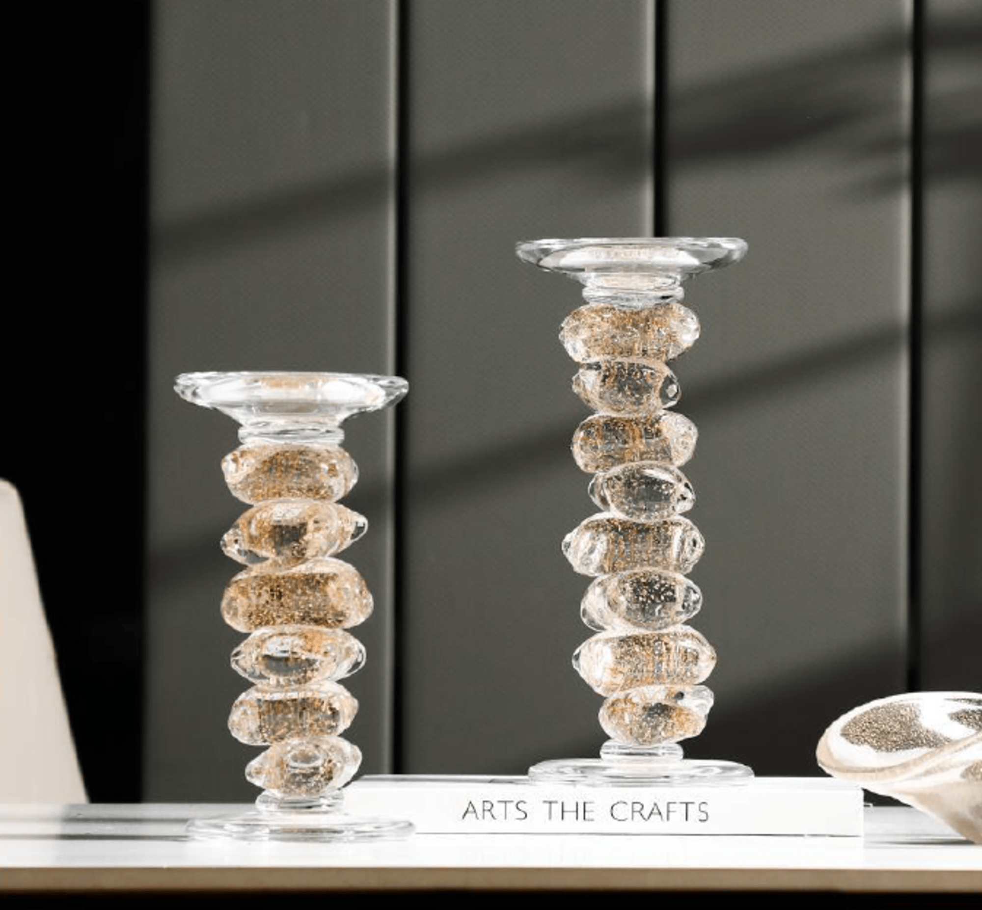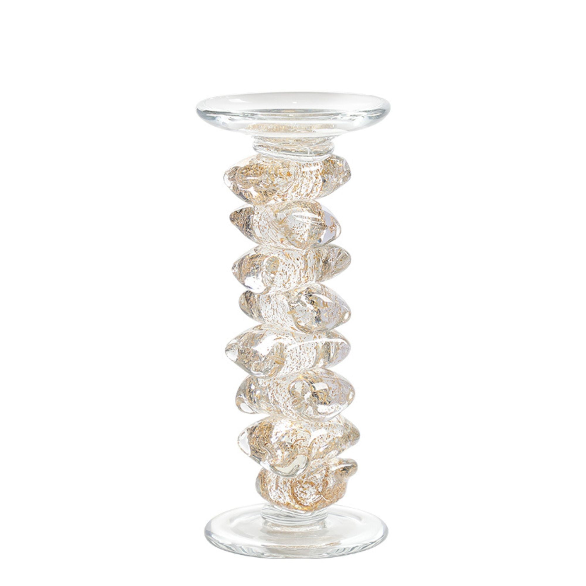 Crafted from luxurious golden glass, this large candle stick will add an elegant touch to any space. Perfect for special occasions or everyday ambiance, the golden hue will cast a warm glow and enhance the atmosphere. A must-have for those who appreciate sophisticated decor.