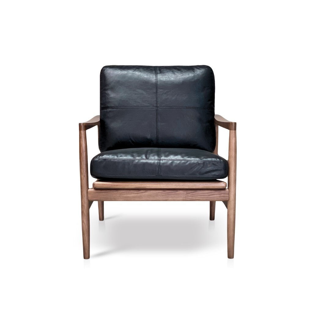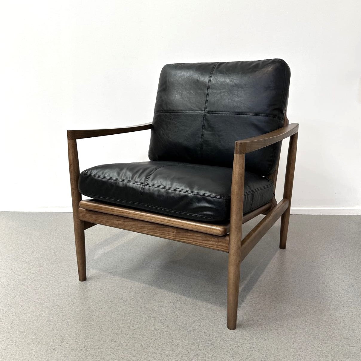 Indulge in luxurious comfort and timeless style with the Hans Mid-Century Black 1 Seater Leather Sofa. Crafted with premium materials and a sturdy solid ash wood frame, this armchair is both durable and beautiful. Sink into the down-filled cushions and admire the sophisticated walnut finish and vintage charm of the black bonded leather upholstery. Elevate any room with a statement piece that exudes elegance and warmth.