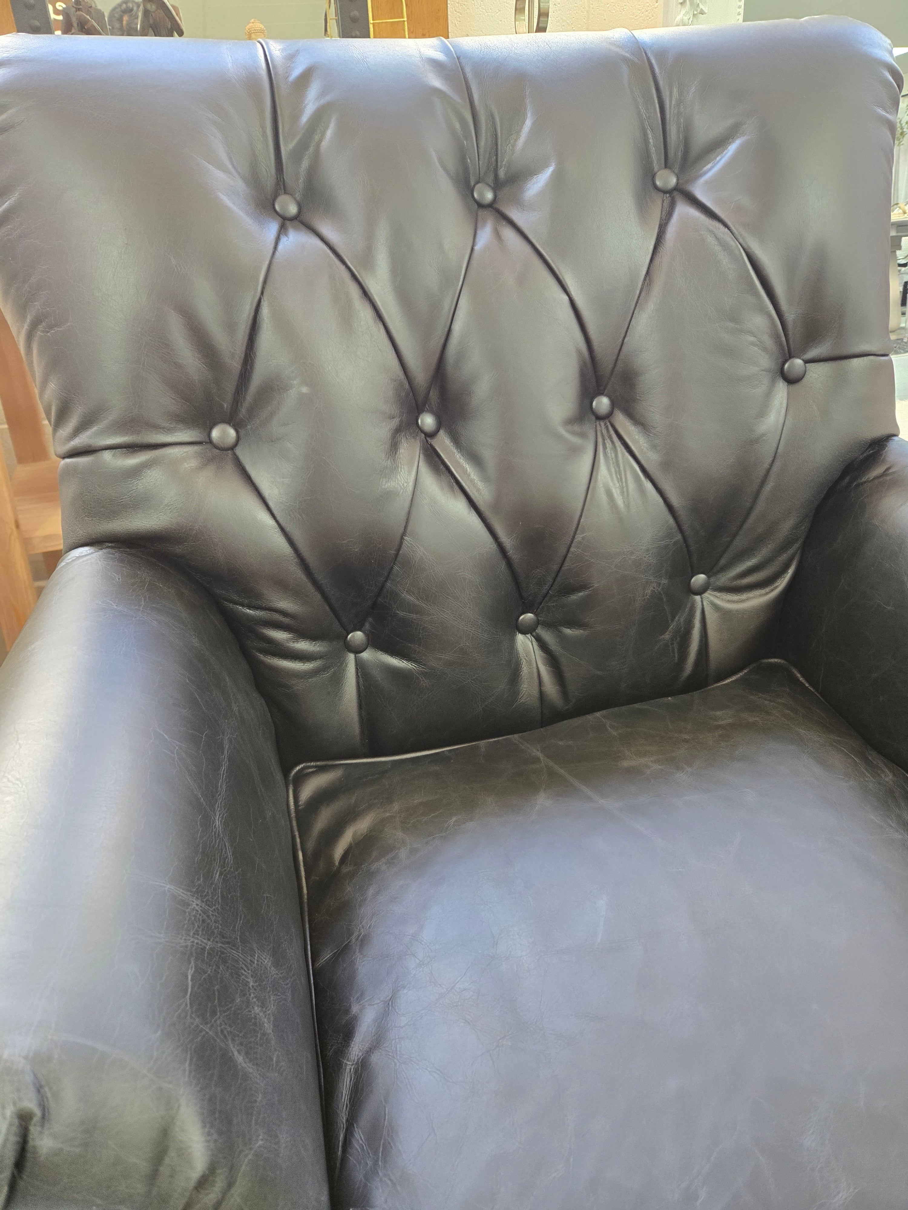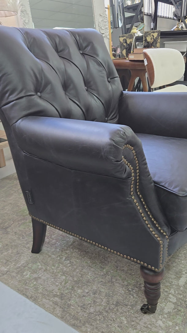 With its classic design of luxurious top grain South American leather and solid timber frame, this button-backed armchair brings an invitingly warm aesthetic and timeless comfort to any dwelling, workspace, or recreational area.