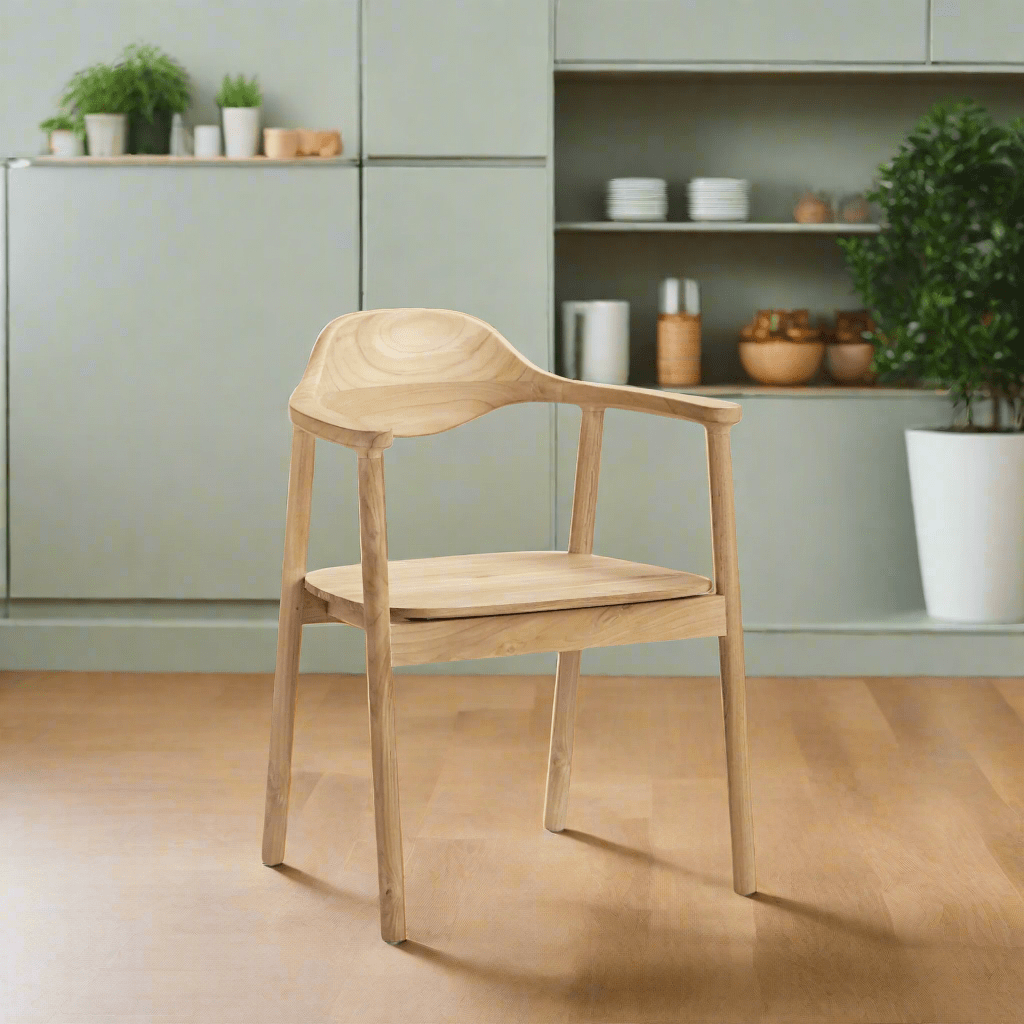 Elevate your dining experience with the Remy Teak Dining Chair with Arms. Crafted from natural teak wood, this chair exudes warmth and elegance. Its neutral tone blends seamlessly with any decor, while the sturdy arms provide comfortable support. Transform your dining area into a stylish and inviting space with this must-have chair.