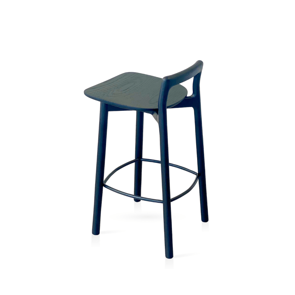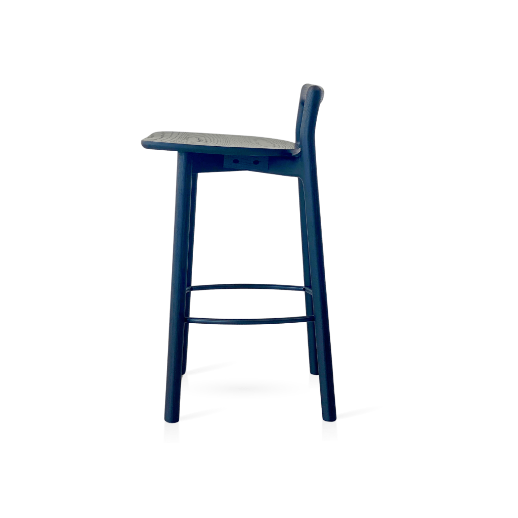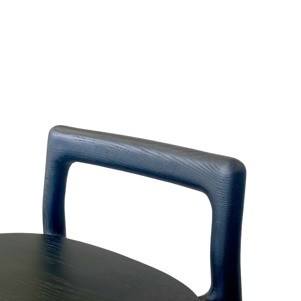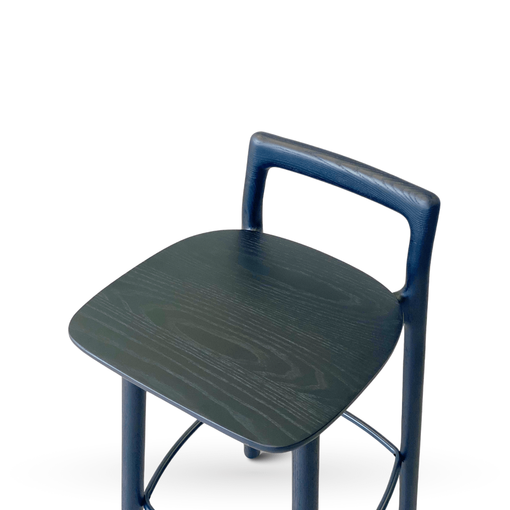 Elevate your bar with the Riga Bar Chair in Solid Black Ash. Crafted from American FAS grade wood and featuring a sleek black stain, this chair exudes sophistication and luxury. The metal footrest adds a touch of industrial style. Customize the frame color and upholstered seat for a truly exclusive piece.