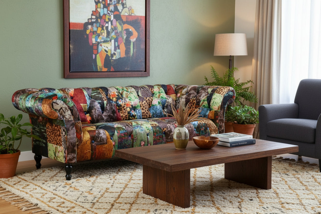 Add a splash of color to your living space with our Patchwork 3 Seater Sofa. Featuring a unique patchwork design, this sofa is both stylish and comfortable. With ample seating for three, it's perfect for entertaining guests or relaxing with the family. Embrace creativity and make a statement in your home!