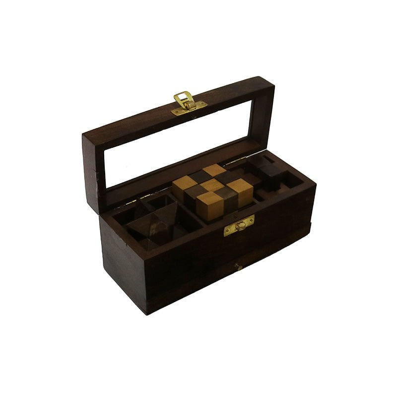 Wooden storage box is included to keep the puzzles separated and organized. HANDSOME ADDITION TO A DESK OR TABLE
