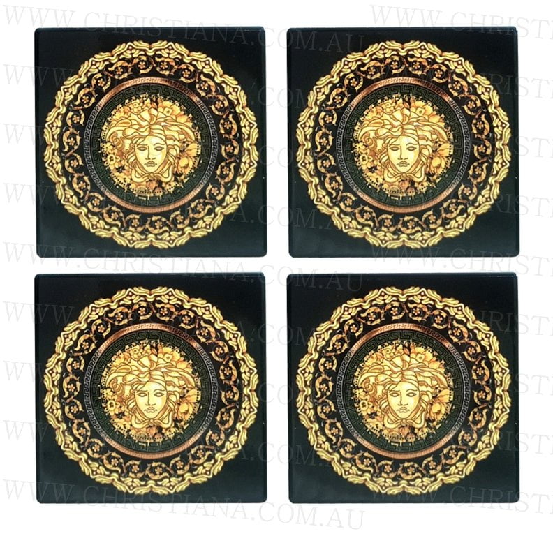 Freshen up your décor with this luxurious Coaster Set of 4 in beautiful gold! Crafted with marble look composition, this set is sure to provide a sense of sophistication and elegance to any setting. With a chic, sophisticated shine, these coasters are the perfect finishing touch to any modern home.