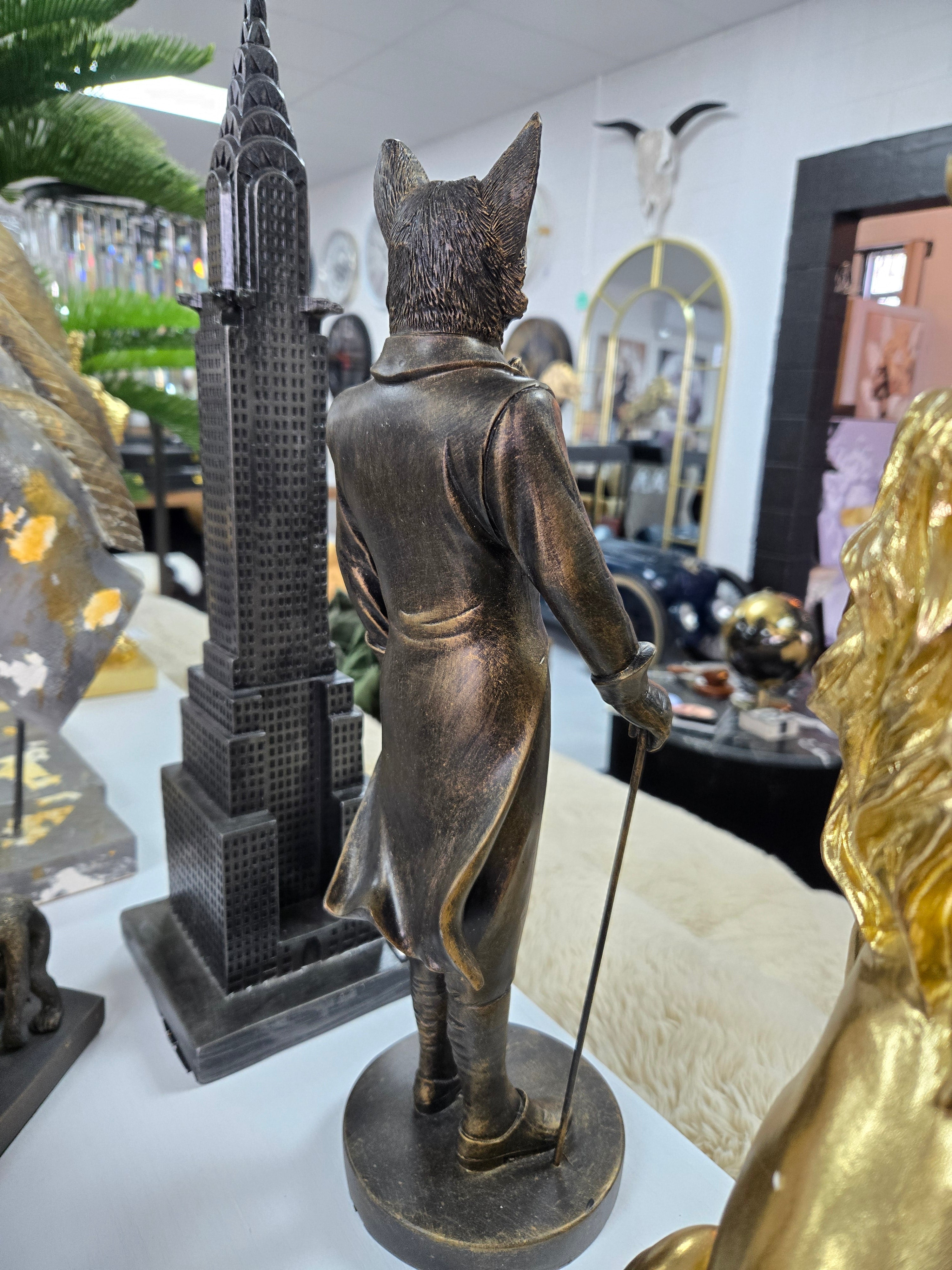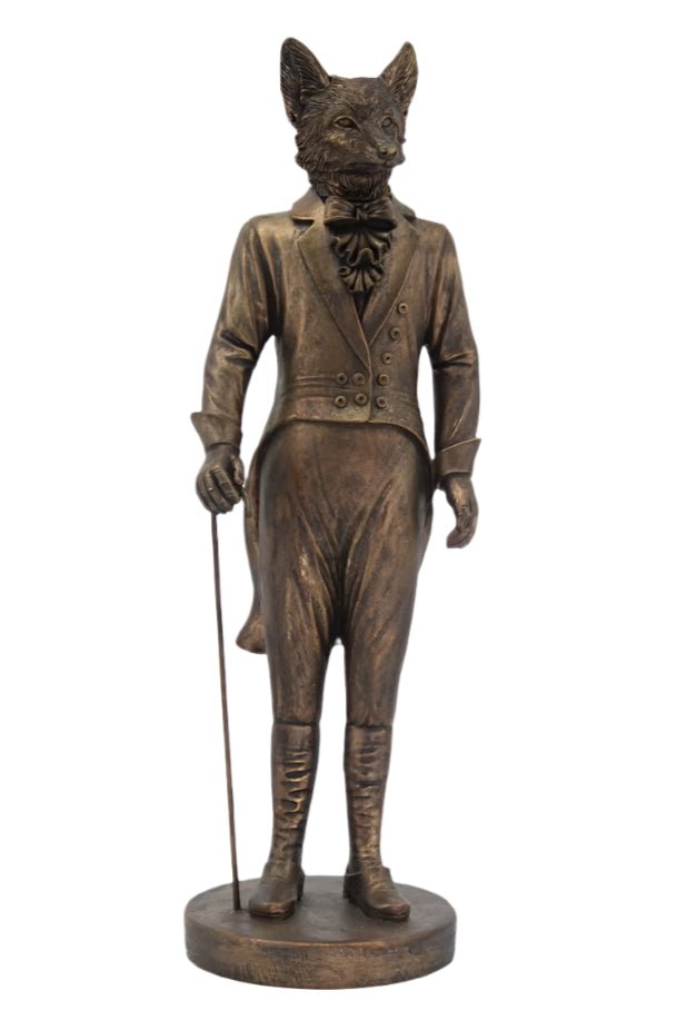 Introducing the Gentleman Fox - Bronze, a true masterpiece standing at 42CMH. Crafted with the utmost attention to detail, this exquisite piece will elevate any space. With its stunning bronze finish, it exudes elegance and sophistication, making it a must-have for any discerning collector.