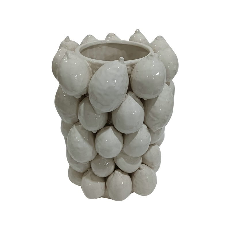 Indulge in the luxury of this exquisite Ceramic Lemon Vessel. Made of the finest quality ceramic, this beautiful white vessel will add a touch of elegance to any space. Its sleek design and delicate composition make it a must-have for those with impeccable taste. Elevate your decor with this sophisticated piece.