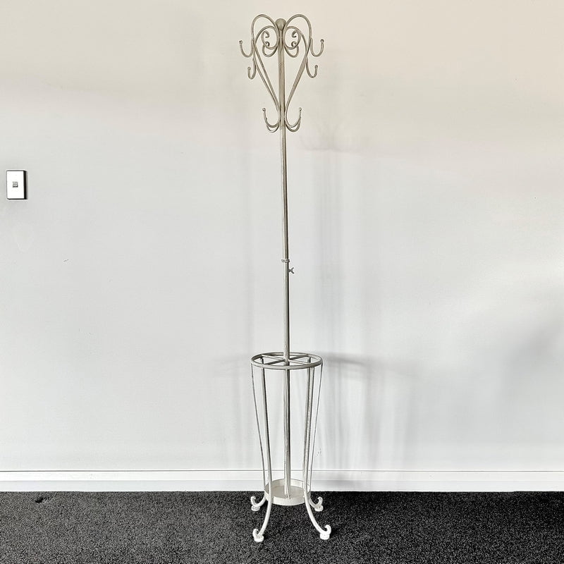 Elevate your home's entrance with our Coat Stand. Its elegant, wrought iron design in antique white adds a touch of luxury to any space. Perfect for keeping coats and umbrellas organized, this stand is both functional and stylish. Upgrade your home's aesthetic with this exclusive piece.