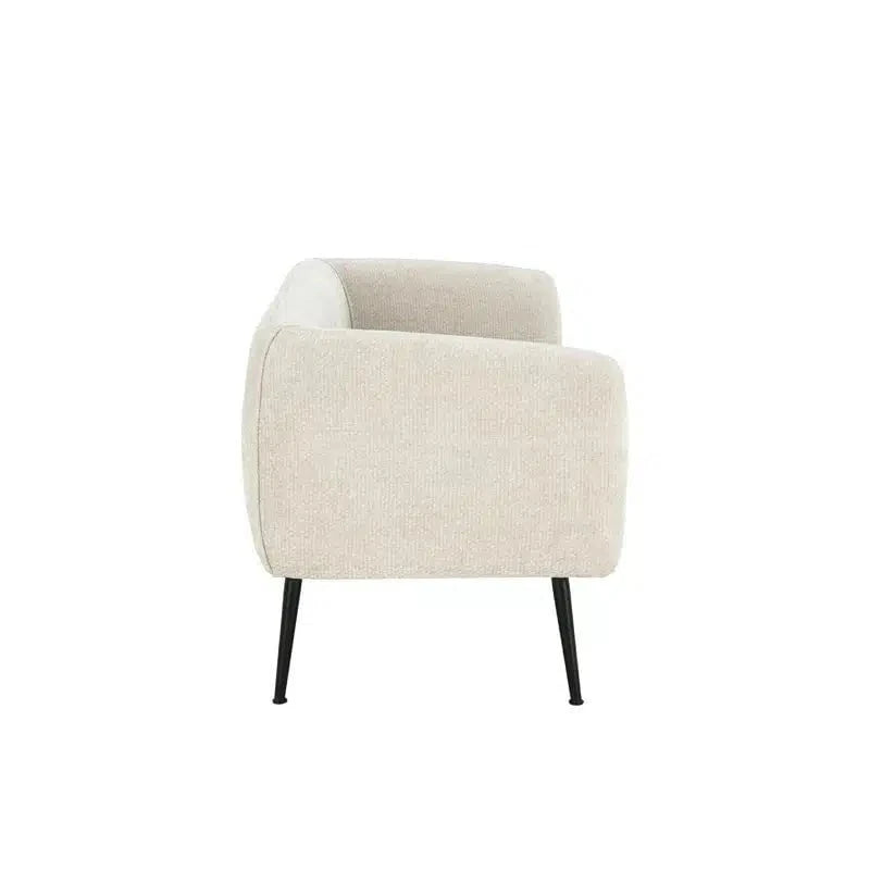 Elevate your living space with the Ellie 2 Seat Sofa in a refined tea hue. Crafted from durable polyester fabric, it offers both comfort and style, while the matte black powder-coated legs provide a sleek, modern foundation.