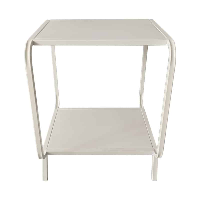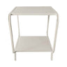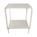 The Samui Metal Side Table in white combines sleek iron craftsmanship with practical design. Its clean lines and understated finish add a refined touch to any room, while the convenient shelf underneath offers extra storage or display space. Perfect for enhancing your living area with both style and functionality.