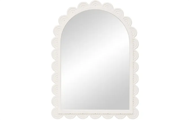 Transform your space with our stunning Scallop Arch Mirror in White. Measuring 70x98cm, this mirror adds a touch of elegance to any room. Its unique scalloped arch design and crisp white finish create a beautiful focal point. Elevate your decor with this stylish and functional piece.