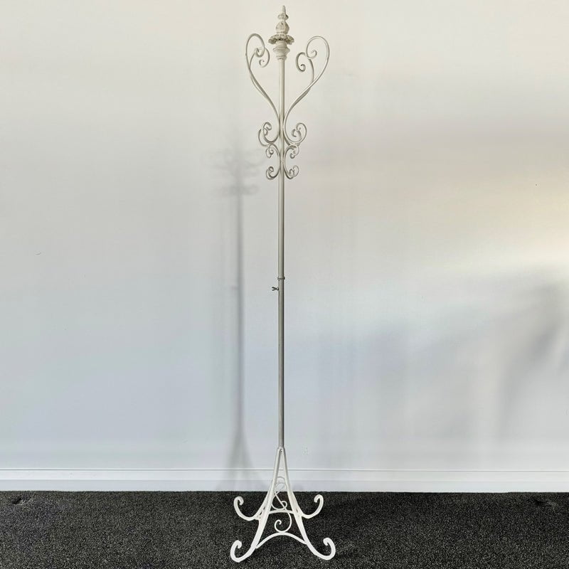 Introducing our Wrought Iron Coat Stand, a perfect addition to any elegant space. Crafted with antique white wrought iron, this stand exudes a sophisticated and exclusive vibe. Its durable material ensures long-lasting use while its timeless colour adds a touch of vintage charm. A must-have for any luxury wardrobe.
