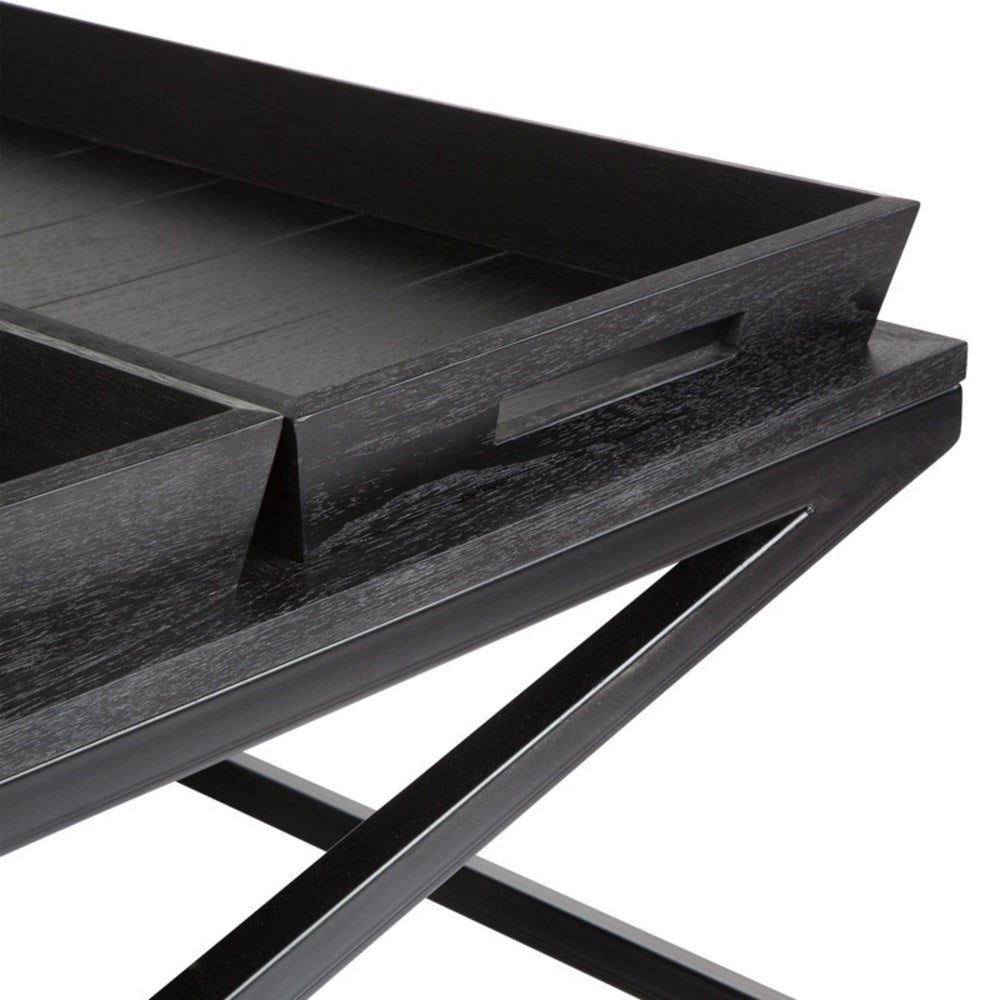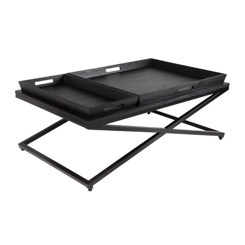 The Chicago black coffee table is the perfect piece for modern living. The clean lines of the grained black finished wood and iron make it an effortless addition to your living room. The removable top trays make it a working piece, perfect for entertaining.
