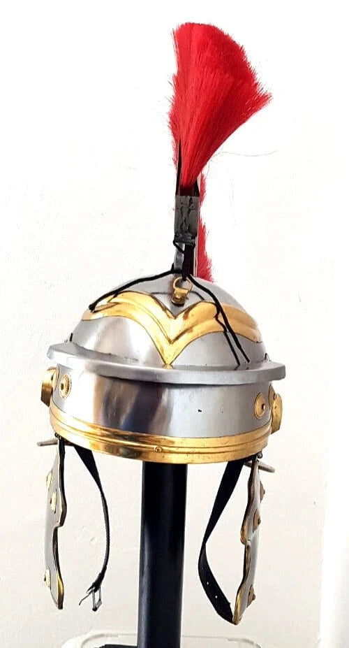 Embody the valor of ancient warriors with this Roman Knight Helmet, featuring a striking red hair plume. Crafted to evoke historical authenticity, it offers a distinguished look perfect for reenactments, displays, or themed events. The bold red plume adds a refined touch, symbolizing courage and leadership. This helmet combines classic design with a sophisticated presence, making it a standout piece for collectors and enthusiasts alike.