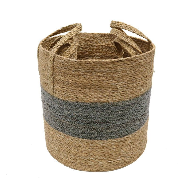 Round Cylinder Stipe Basket With Handle - Set of 3