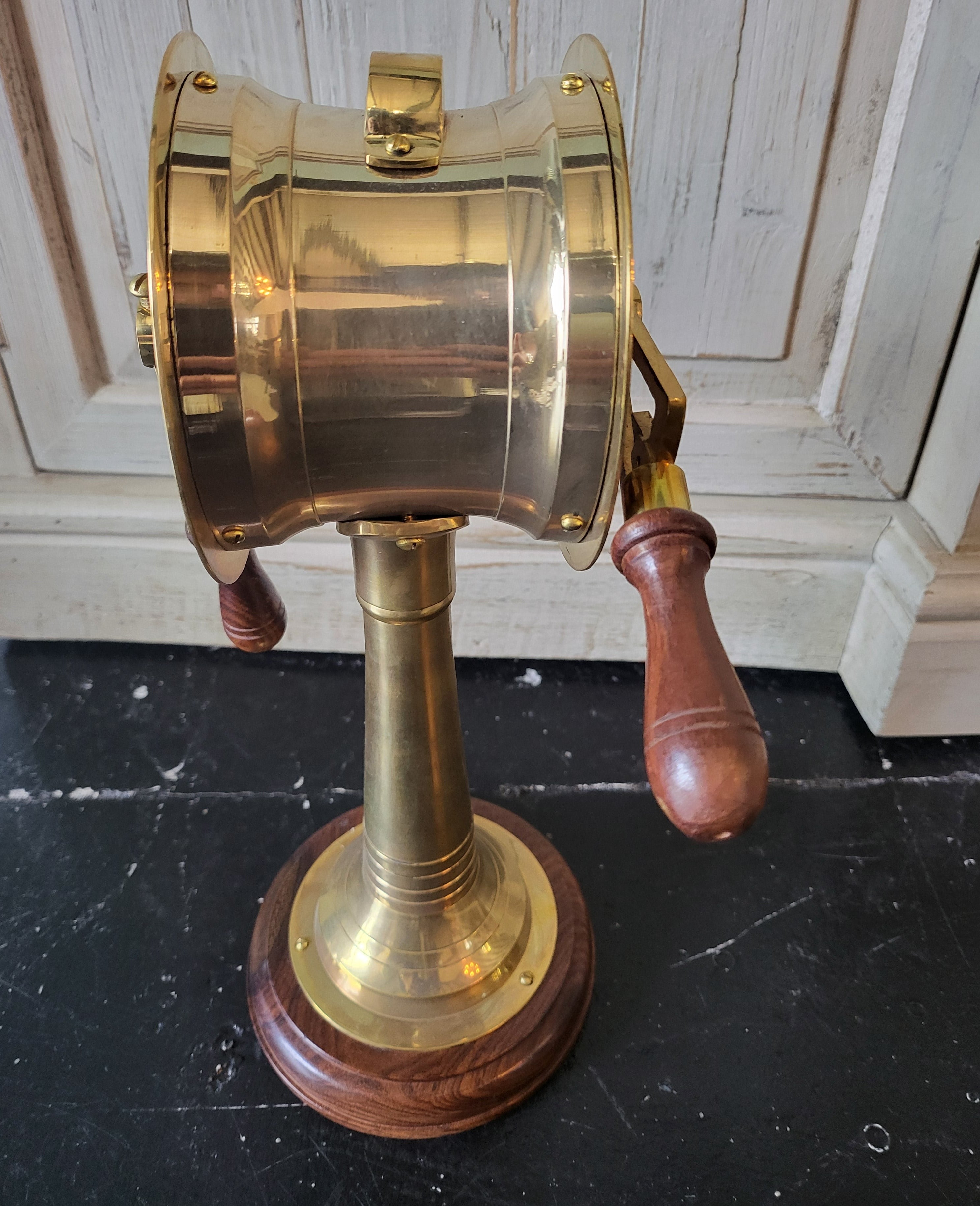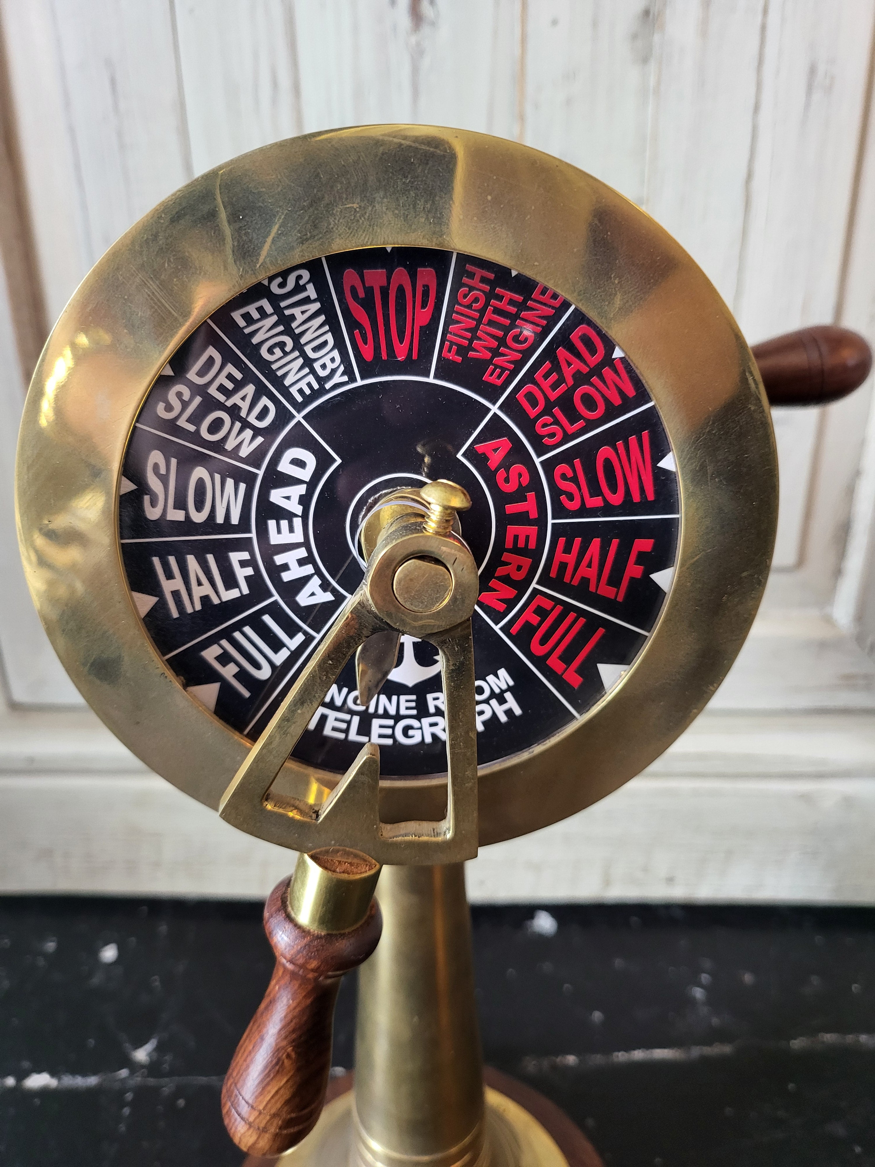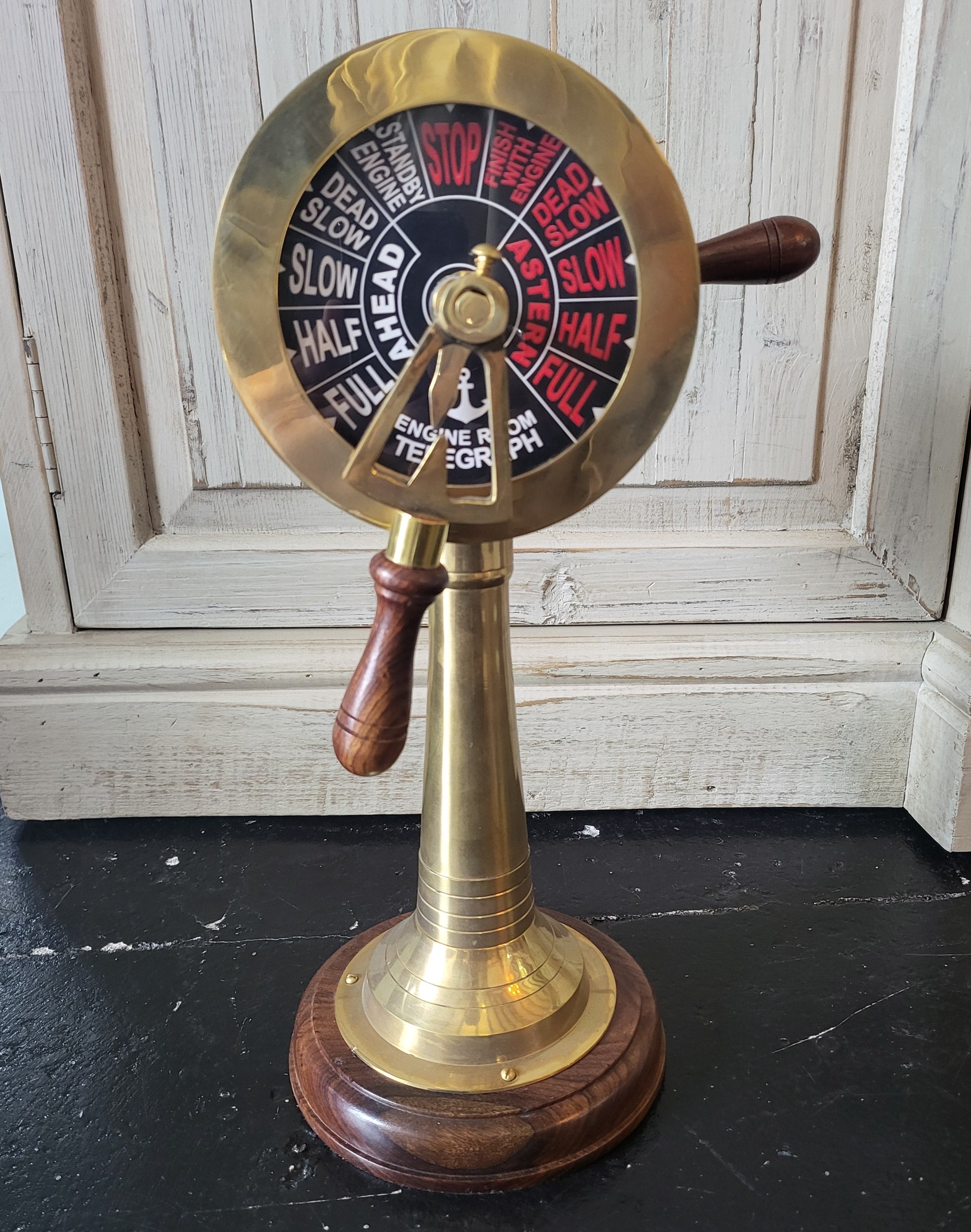 This elegant Ship Engine Telegraph is crafted from premium brass and wood for a luxe, sophisticated look. Featuring brass antique finish, as well as bell sounds from both sides and folding into three parts, it is an effortlessly stylish and practical addition to any nautical enthusiast's collection.