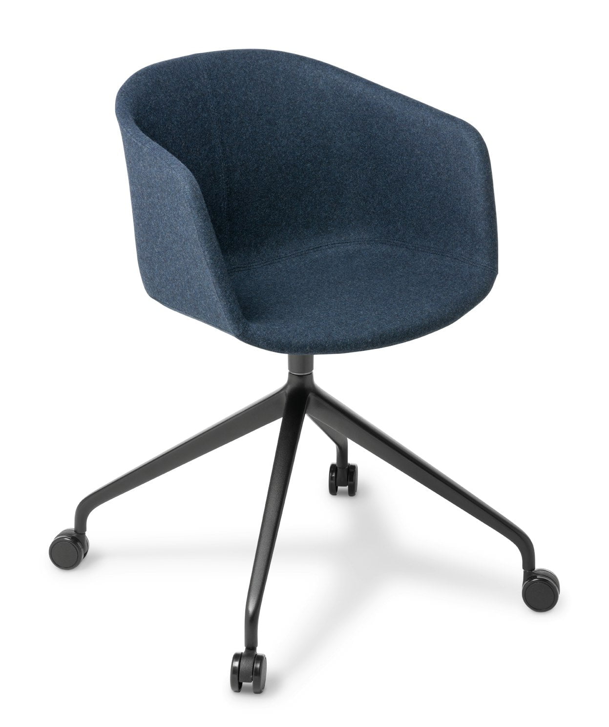 - Seat shell of 100% recycled polypropylene, fully upholstered