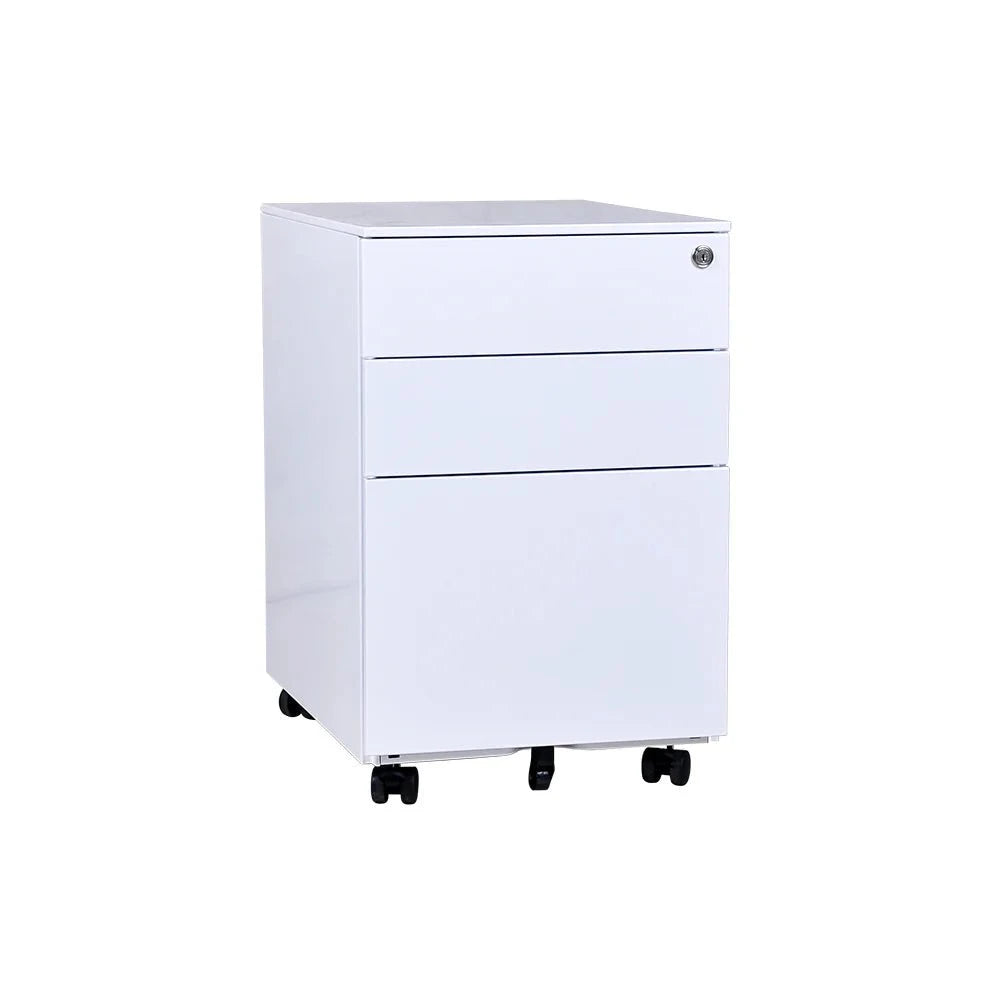 Enhance your workspace with the Metal Mobile Pedestal, featuring 2 personal drawers and 1 Foolscap file drawer, perfect for Australian and New Zealand file frames. Experience the convenience of central locking and a folding key, while the recessed side handles and clean flat drawer fronts provide a sleek and professional look. Plus, a simple stationery tray is included for added organization. Elevate your office with this must-have piece!.