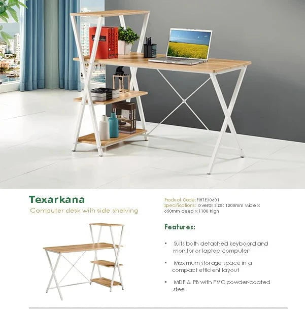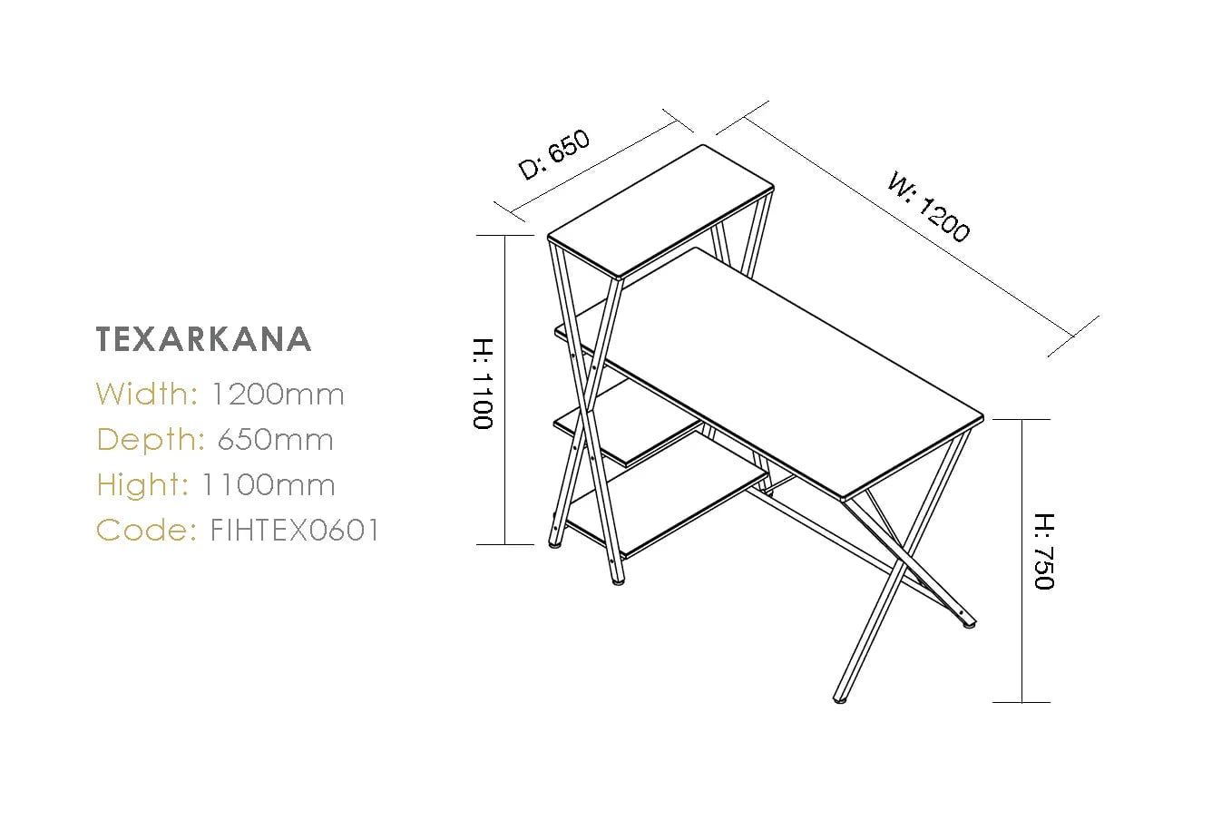 Experience the ultimate home office solution with the Texarkana computer desk. Its intersecting shelves and desktop space create a modern and compact design, perfect for easy access and ample storage. Add a touch of modernism to your workspace and stay organized with this versatile desk.