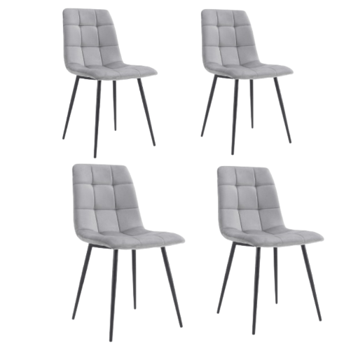 Experience luxurious comfort and modern style with our Chicago Dining Chair in grey. Made with smooth velvet fabric and a sturdy metal frame, this chair offers both durability and sophisticated elegance. Upgrade your dining experience with this sleek and chic addition to your home.