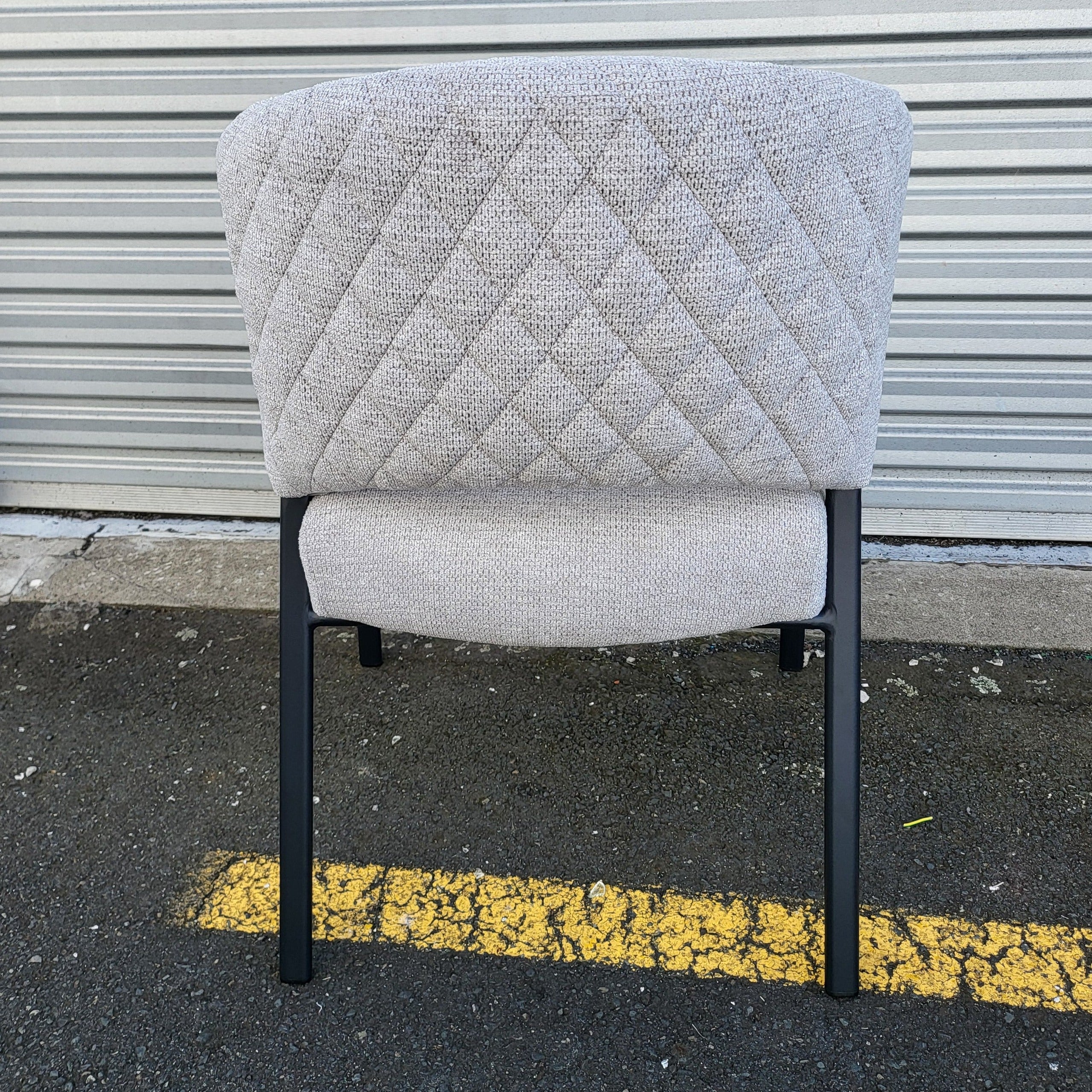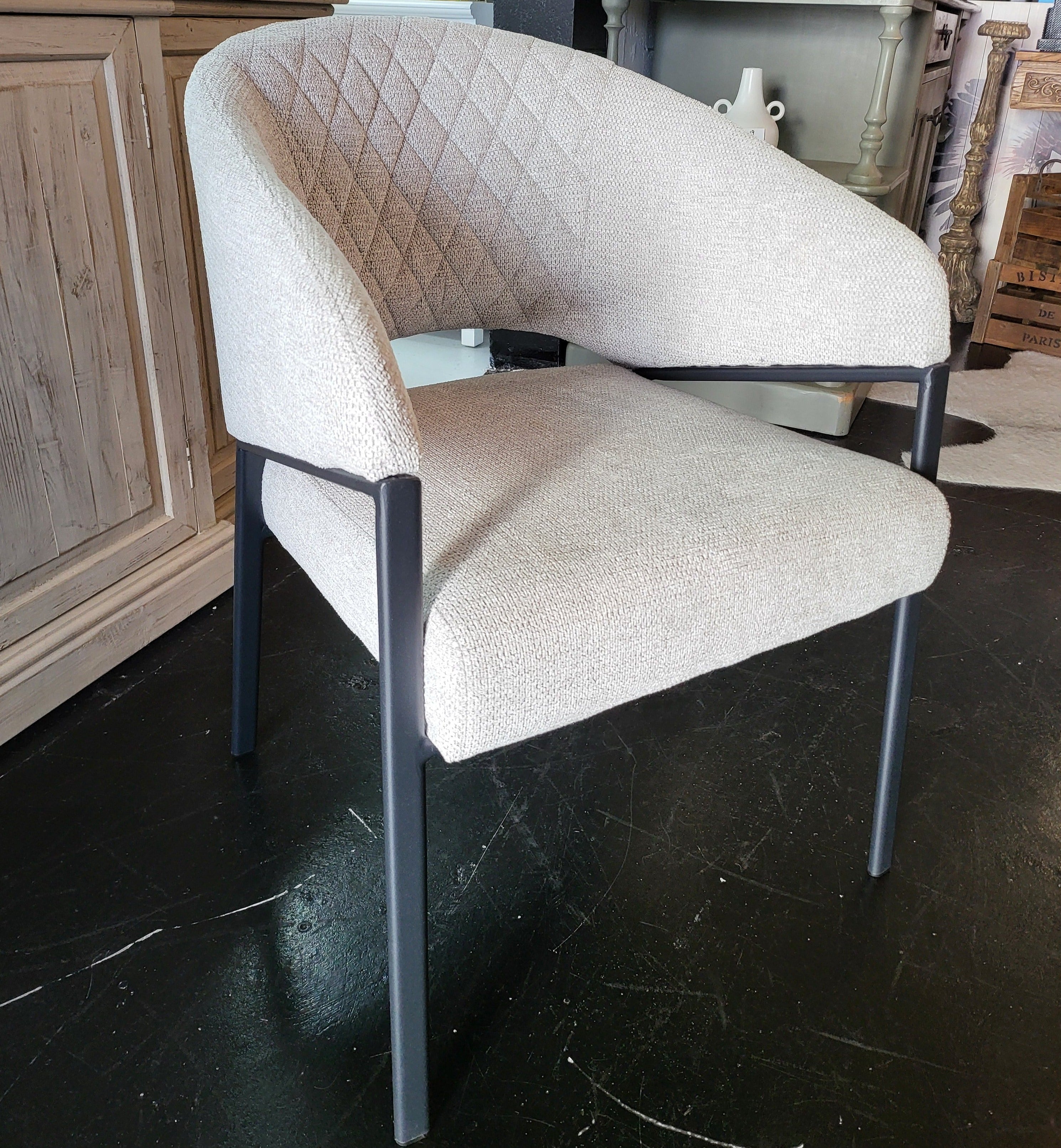 Indulge in luxurious dining with our Sydney Dining Chair. The elegant design features diamond stitching on the back and black power coating legs, elevating your dining experience. Upholstered in Aragon fabric in the stunning sand color, this chair adds both style and comfort to any meal.