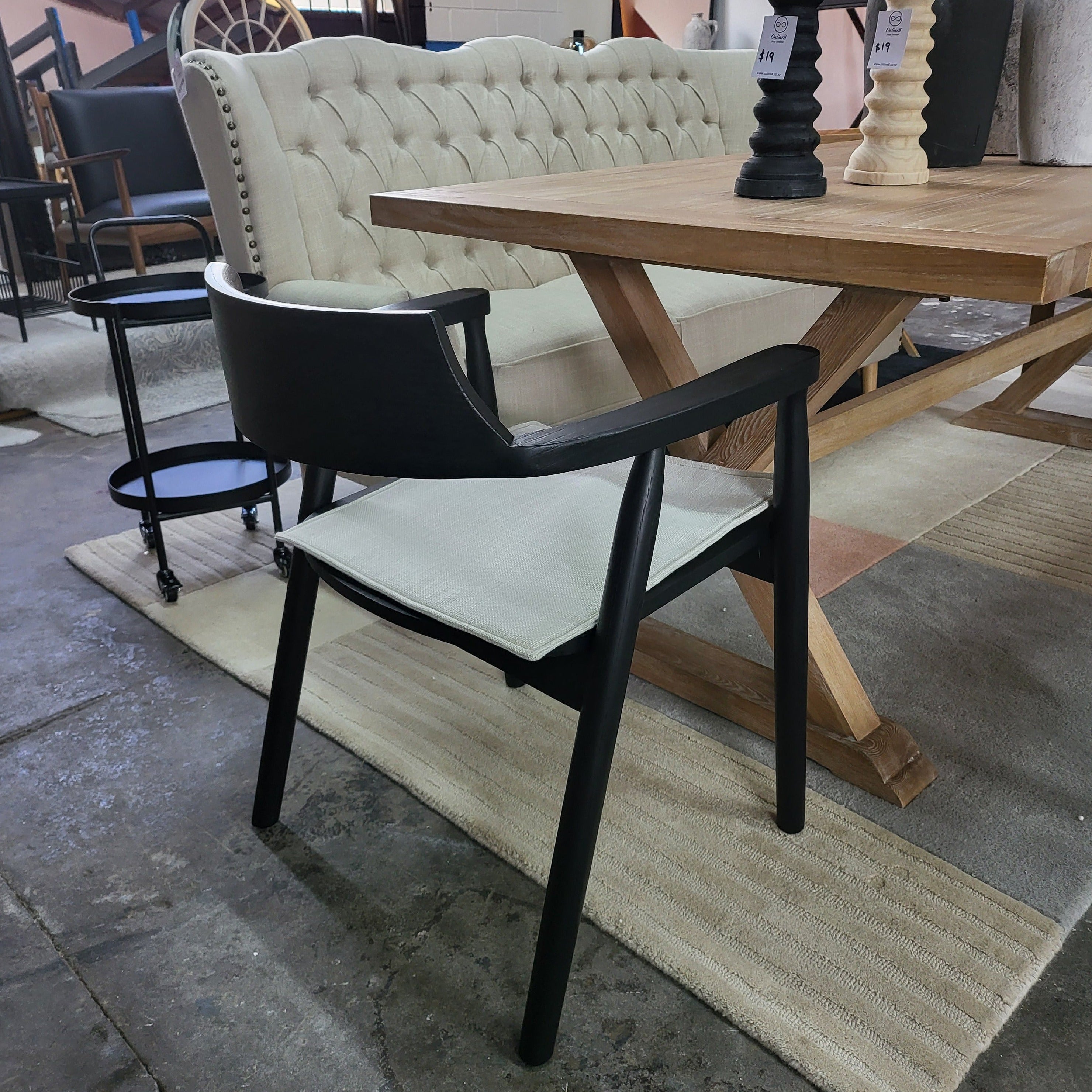 The Vitale Dining Chair is a perfect combination of style and comfort. Its sleek and hardwood structure refines any dining space with exclusive sophistication, while its arms and washable and removable seat cushion provide optimal support and comfort. Dine in luxury and pure elegance with the Vitale Dining Chair.