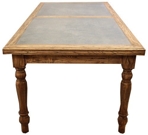 Make a statement with this distinctive dining table. Crafted from reclaimed old elm and antique zinc panels, it radiates both rustic charm and industrial chic. The muted tones and distinct wood grain add a sophisticated touch to any dining area, while the table is large enough to provide comfortable seating for up to 8 people.