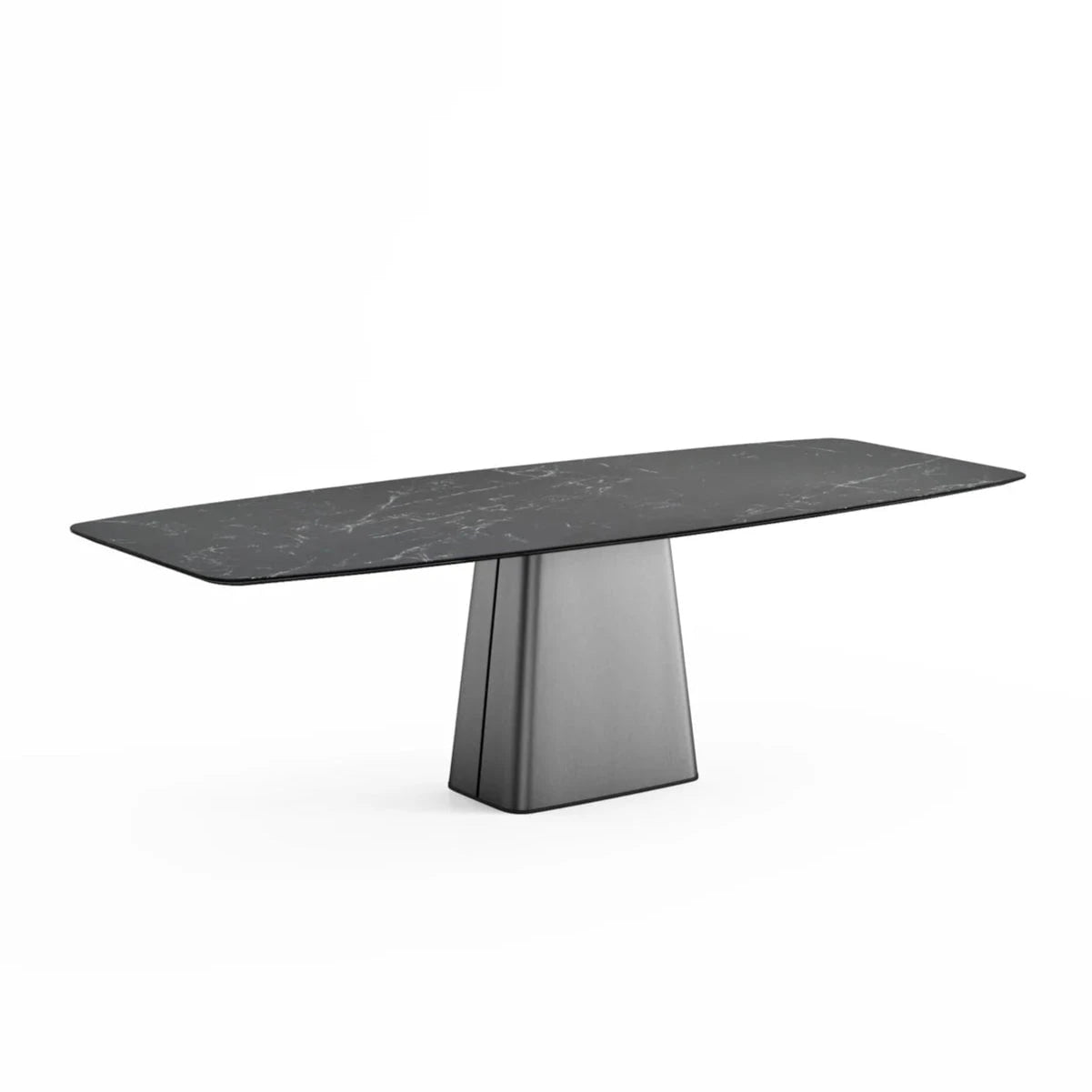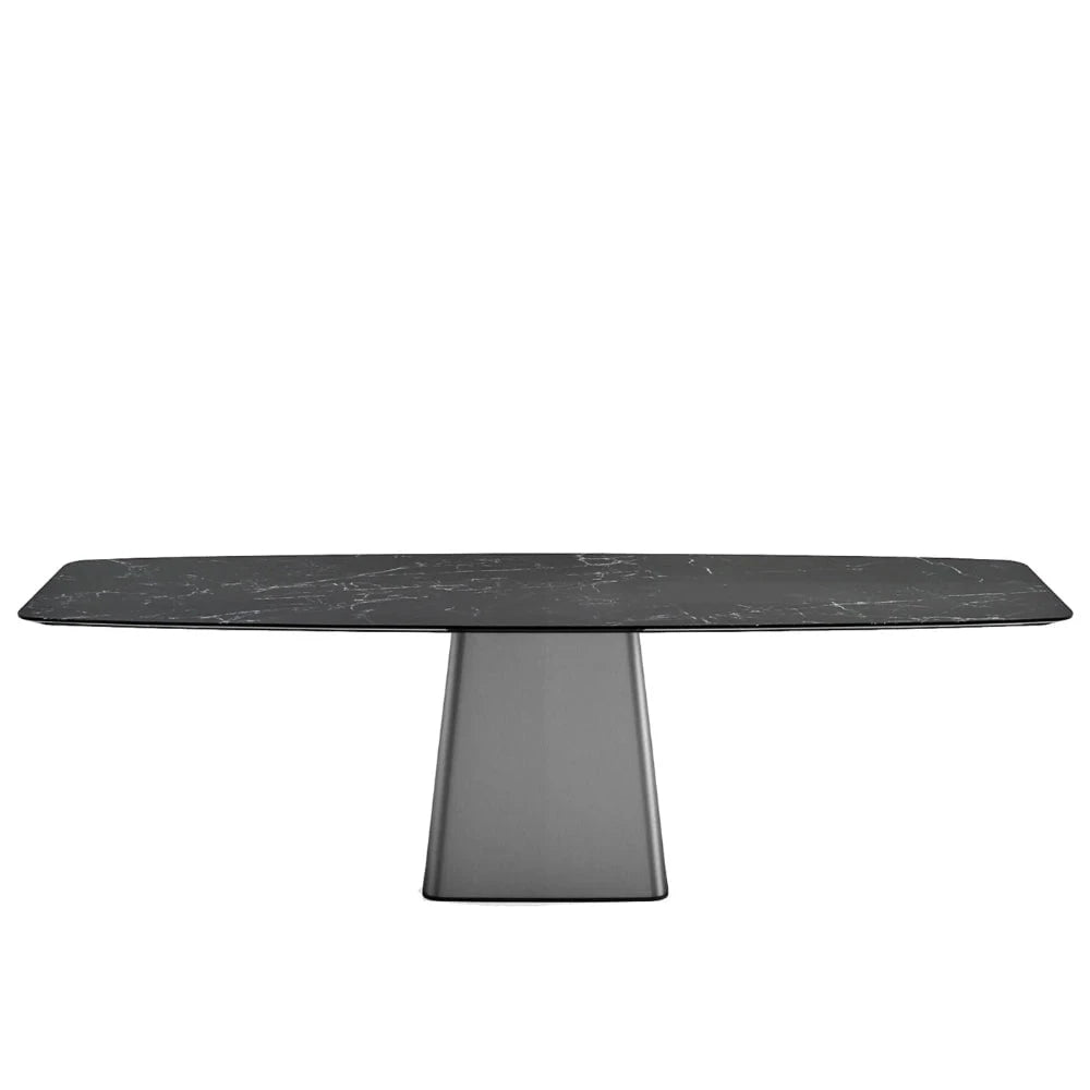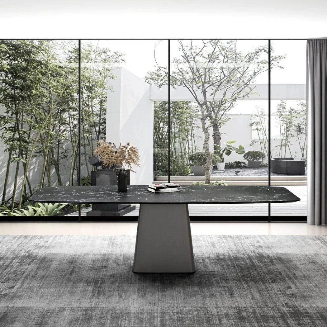Emilia Stone Dining Table – Black Sintered Stone & Silver Steel
