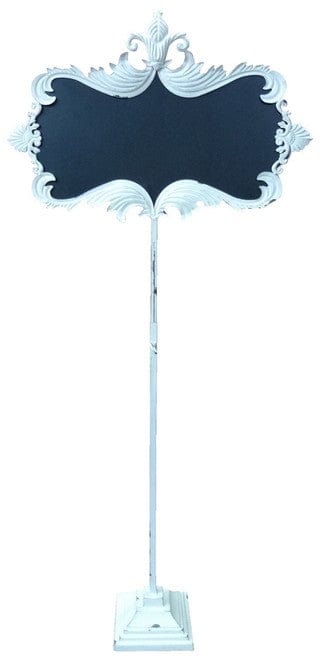 Frame made from elegantly shaped metal frame painted in an antique white finish with a blackboard panel, this café menu sign brings a nice French country / old-world chic to any home.