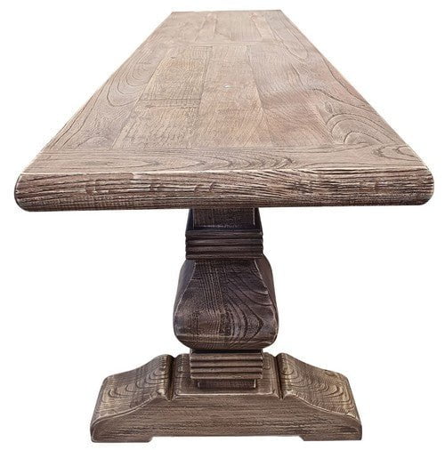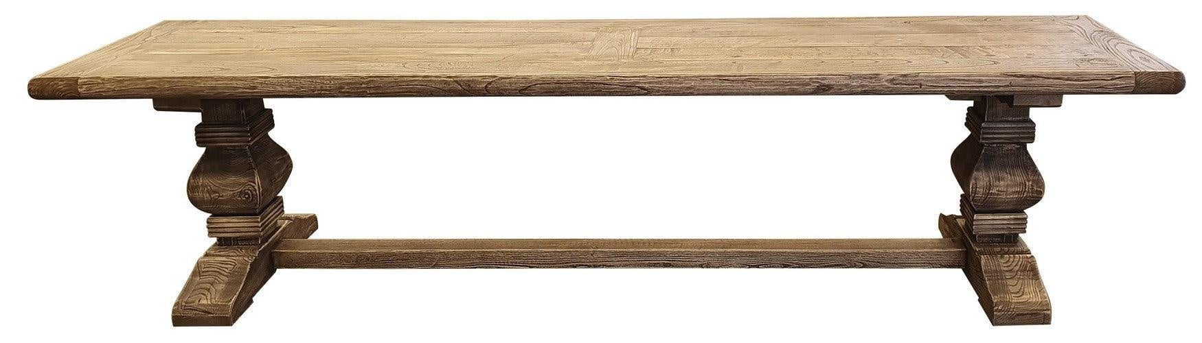 This exquisitely crafted bench made of solid old elm displays a beautiful natural finish that enhances the warmth and grain of the wood, making it an ideal accent for living spaces or entertainment areas. Its earthy tones and soaring design add a hint of grandeur to any home décor.