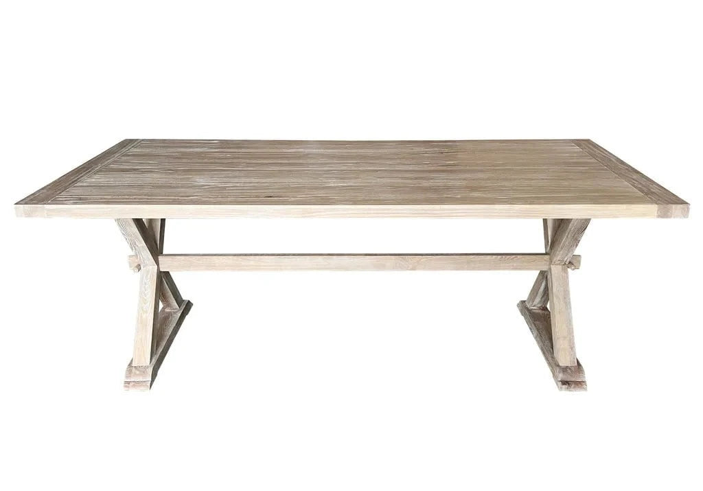 Featuring gorgeous x-shaped supports and key-through tensions, the Provincial Dining Table radiates the rustic charm of an Italian farmhouse. Its exquisite grey-wash finish adds antique-like sophistication that's sure to delight your family meal after meal for years to come!