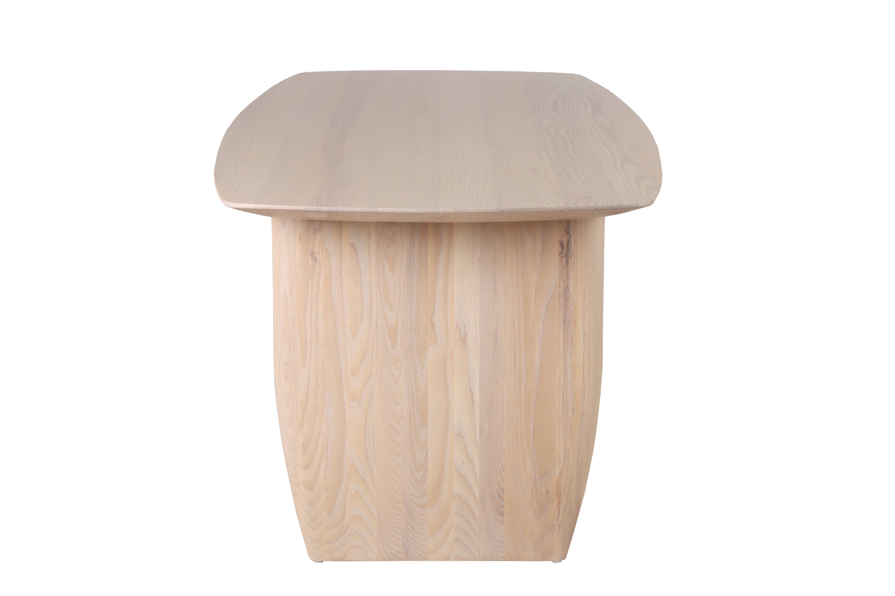 The Quantum Dining Table is a stylish and durable piece, crafted from solid ash wood and featuring a minimalist design. With its sturdy construction and natural elegance, this contemporary dining table exudes modern sophistication. Perfect for any dining space, it seamlessly combines functionality with aesthetic appeal.