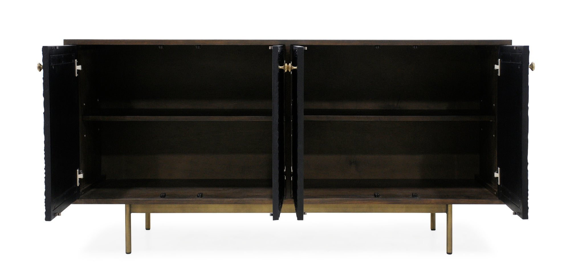 Bring timeless sophistication to your space with the Heirloom Sideboard. Featuring a bold textured front design and finished in a refined mix of warm iron brown, black, and brass, this striking piece adds instant character to any room.