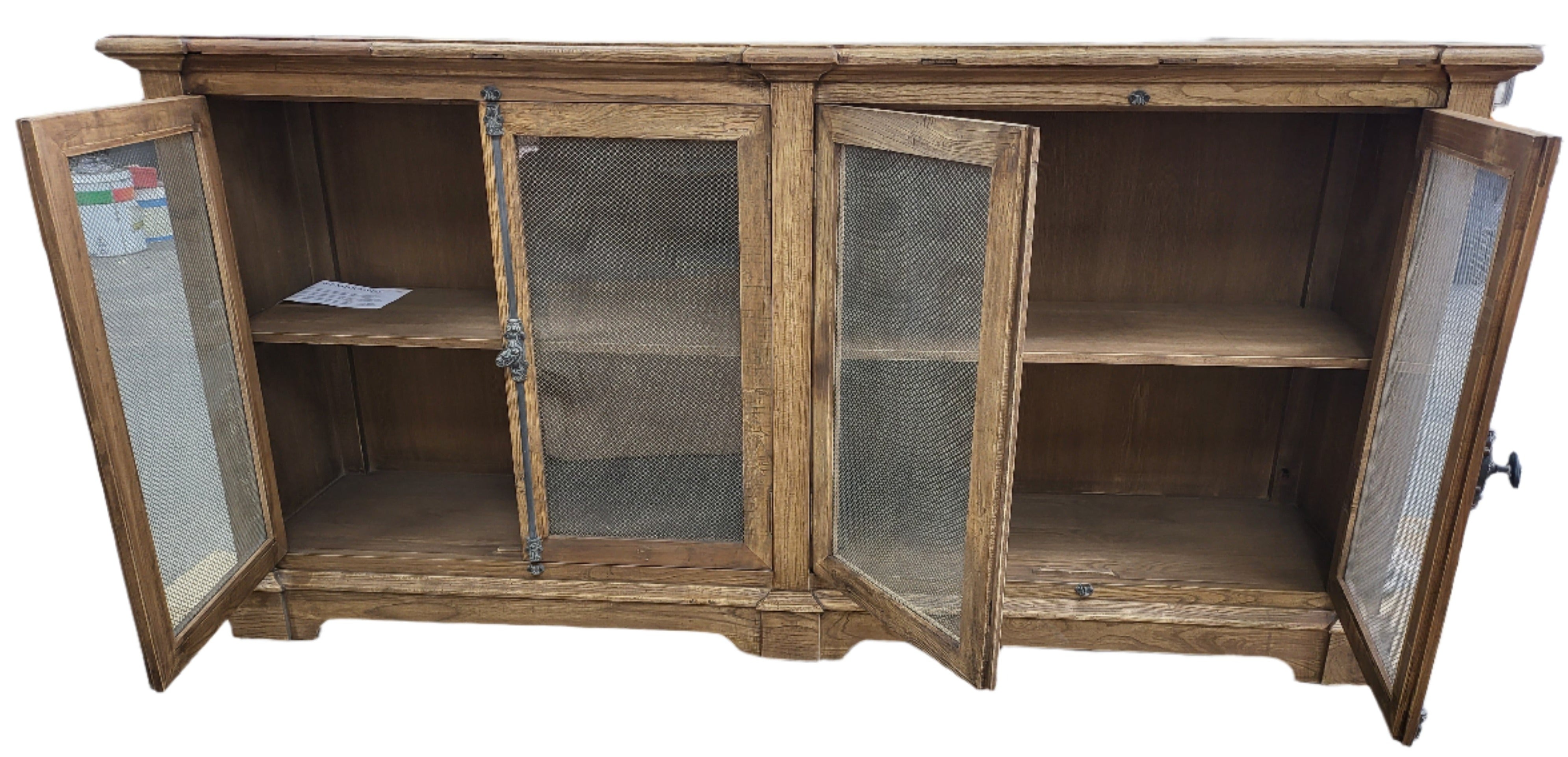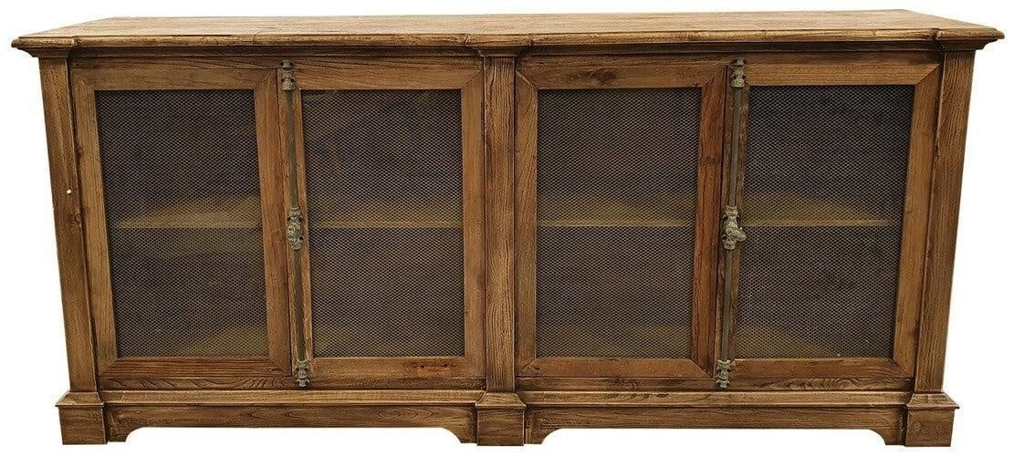 Natural and inspired by old world timberwork, this 4 door sideboard is hand made and will complement any space with a sense of nostalgia and historical charm. Ideal for living, offices, hallways or dining areas. Made from reclaimed elm, glass, antiqued chicken wire and antiqued metal closures, this sideboard is a great storage option in any home, particularly rustic inspired.