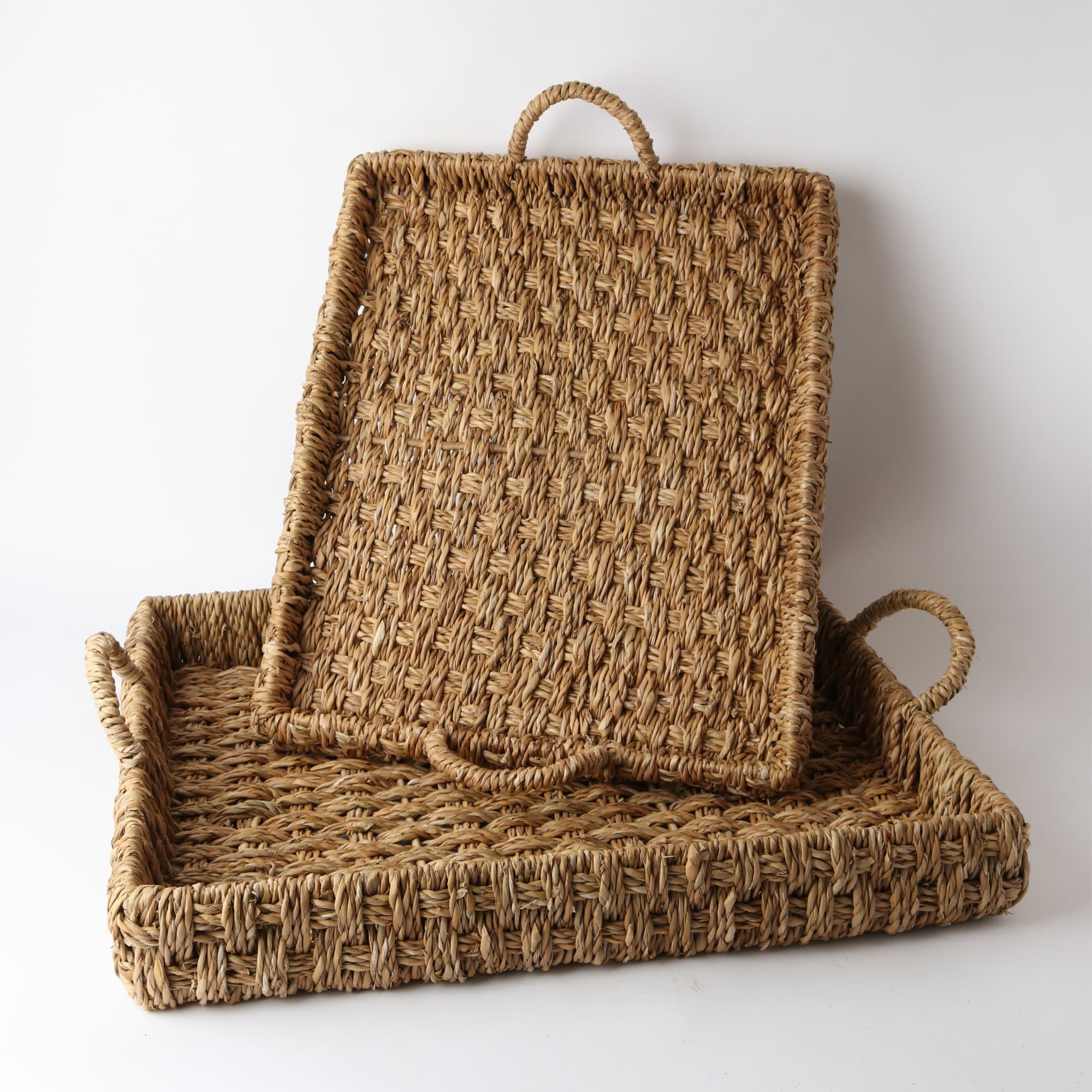 Hand-Woven Natural Seagrass: Each tray features a unique weave pattern, showcasing the tonal variations of natural seagrass for an authentic, "brought-from-nature" feel.