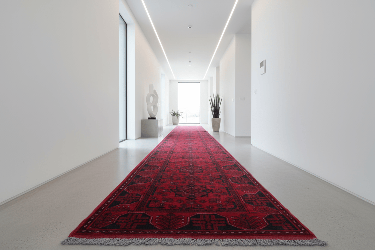 Origin: The design was perfected by Afghan Turkmen weavers, particularly from the Khal Mohammadi tribe, who are credited with refining the dyeing process and enhancing the richness of the red tones.