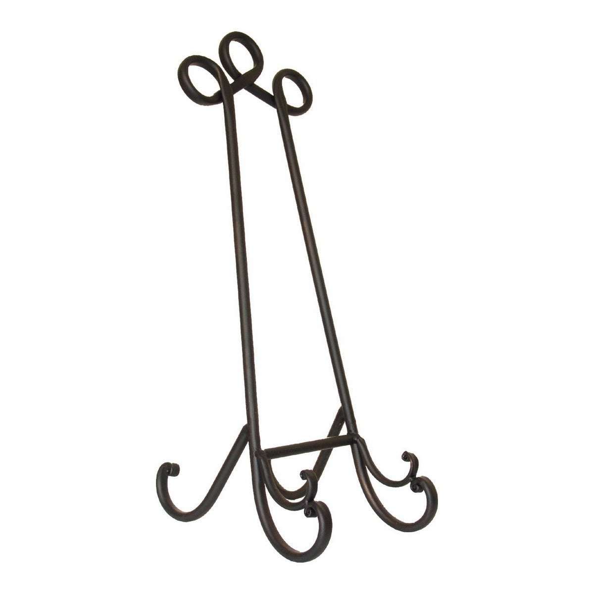 Introducing our Metal Plate Holder - a reliable and sizable display solution for your favorite decorative objects. Whether it's an ornate plate or a small canvas print, our sturdy holder will elevate any piece effortlessly. Its elegant shape and dark finish make it a perfect fit for any decor style.